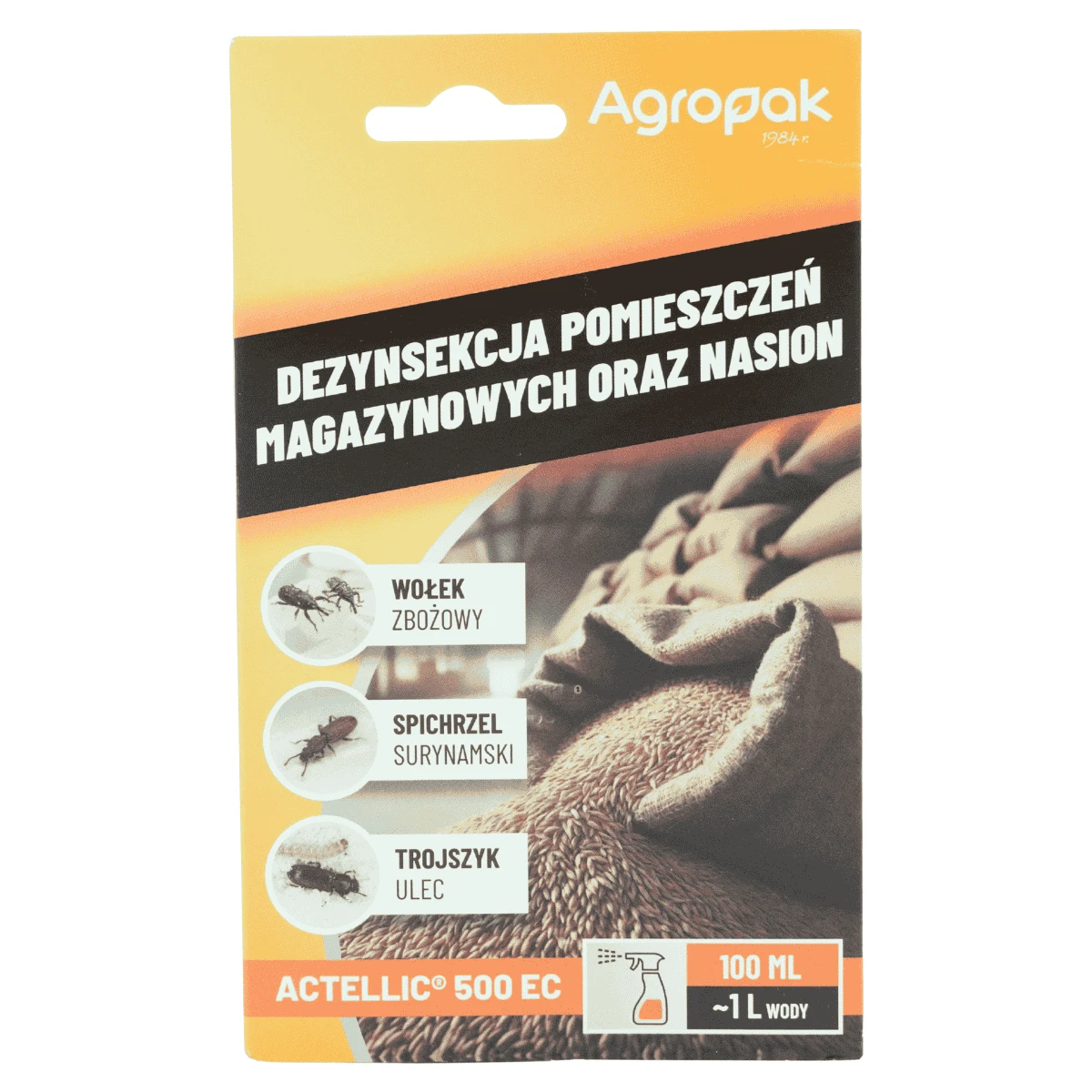 Actellic 500 EC to insektycyd w formie koncentratu do przygotowania emulsji wodnej, działający kontaktowo, żołądkowo oraz gazowo. Jest używany do dezynsekcji pustych magazynów oraz nasion. Przed dezynsekcją należy szczelnie zamknąć drzwi i okna oraz wyłączyć wentylację. Po zakończeniu zabiegu, pomieszczenie powinno być zamknięte przez co najmniej 4 godziny, a do użytku oddane po wyschnięciu opryskanych powierzchni i dokładnym wywietrzeniu.
