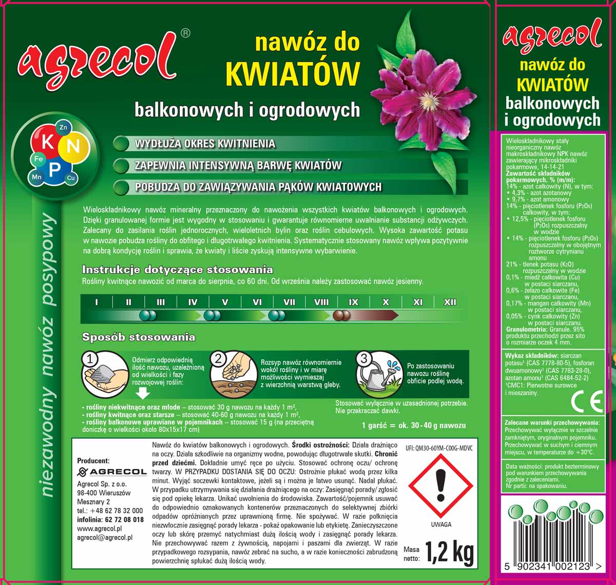 Nawóz do kwiatów balkonowych i ogrodowych to wieloskładnikowy, granulowany nawóz mineralny CE z serii posypowej, przeznaczony do kompleksowego nawożenia wszystkich roślin kwitnących uprawianych na balkonach oraz w ogrodach. Produkt został opracowany z myślą o intensywnie użytkowanych rabatach i pojemnikach, gdzie rośliny wymagają systematycznego uzupełniania składników pokarmowych.