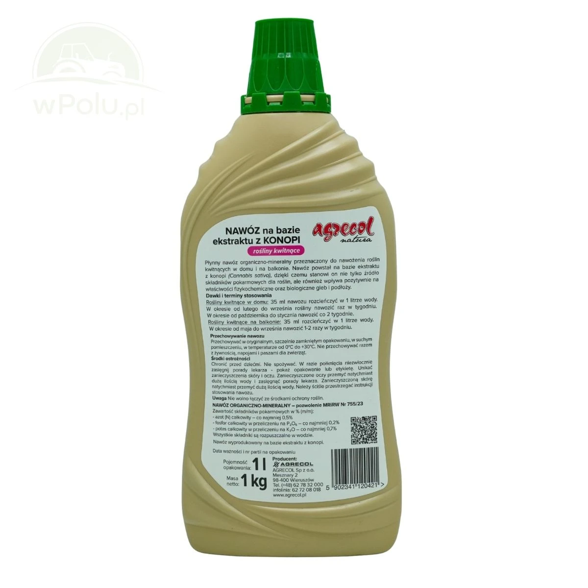 Nawóz na Bazie Ekstraktu z Konopi do Roślin Kwitnących Agrecol 1 l