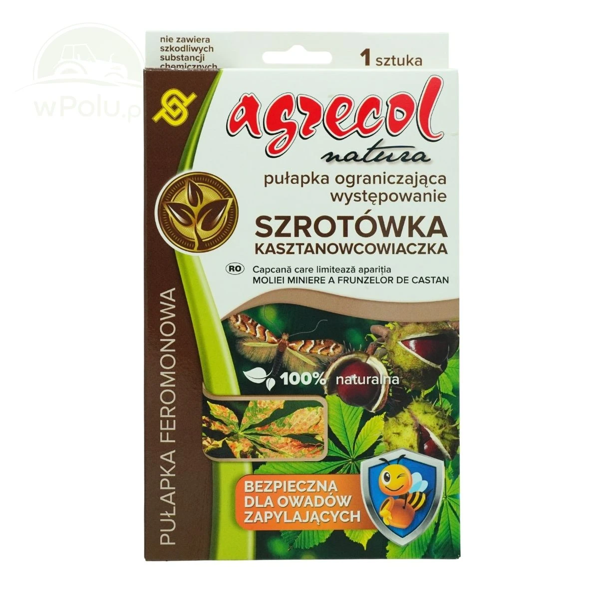 Pułapka feromonowa do odłowu motyli szrotówka kasztanowcowiaczka. Pułapka skutecznie przyciąga i wyłapuje szrotówka kasztanowcowiaczka (Cameraria ohridella), groźnego szkodnika kasztanowców. Jest łatwa w użyciu, bezpieczna dla ludzi, zwierząt domowych i owadów zapylających, oraz przyjazna dla środowiska, ponieważ nie zawiera szkodliwych substancji chemicznych. Działa 2 miesiące od zawieszenia.
