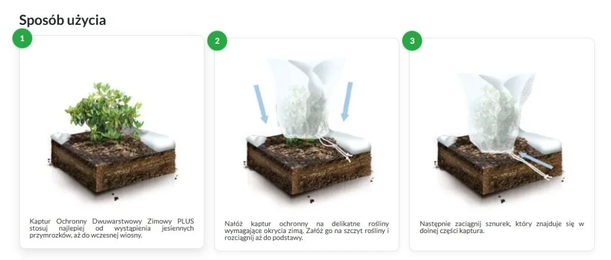 Dwuwarstwowy Kaptur ochronny na zimę Agrimpex Plus doskonale sprawdza się w ochronie krzewów ozdobnych, młodych drzewek, wrażliwych roślin doniczkowych oraz gatunków podatnych na przemarzanie i przesuszenie. Zapewnia barierę przed mrozem, śniegiem, wiatrem i intensywnym słońcem, tworząc roślinom stabilne warunki przetrwania aż do wiosny. Dzięki wygodnemu ściągaczowi jest łatwy w montażu i wielokrotnego użytku, co czyni go rozwiązaniem zarówno praktycznym, jak i ekonomicznym. Zestaw zawiera dwa kaptury o wymiarach 90 × 130 cm, odpowiednie do roślin o średnicy do ok. 58 cm.