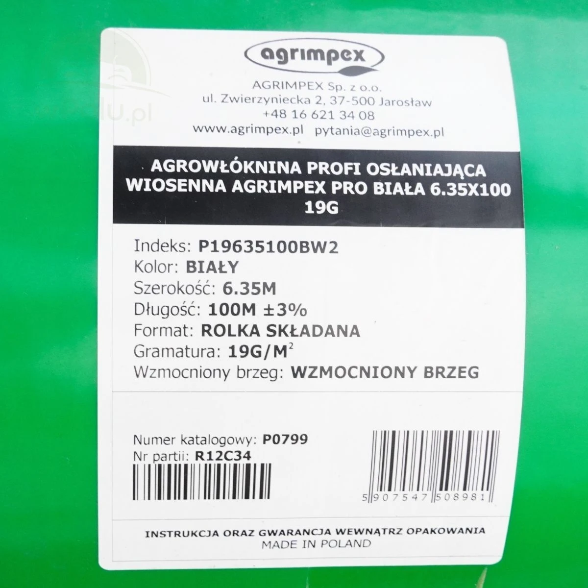 Agrowłóknina Agrimpex PRO P19 3,2 m X 100 MB to wielosezonowa biała włóknina okryciowa przeznaczona do profesjonalnych upraw rolniczych, warzywniczych i sadowniczych. Chroni rośliny w okresie wiosenno-jesienno-zimowym przed przymrozkami, silnym wiatrem, gradem oraz zbyt intensywnym nasłonecznieniem. Dzięki trwałej, elastycznej strukturze dobrze dopasowuje się do upraw, a jednocześnie zapewnia przepływ wody i powietrza, co ogranicza ryzyko gnicia roślin. Dodatkowo stanowi barierę dla ptaków i owadów, sprzyjając zdrowemu wzrostowi roślin oraz wcześniejszemu uzyskaniu plonów.