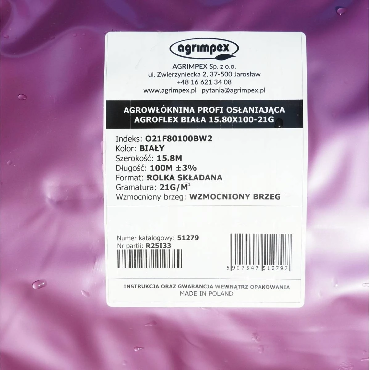 Agrowłóknina Agrimpex PRO P21 15,8 x 100 MB WB to wysokiej jakości wielosezonowa agrowłóknina biała, stworzona z myślą o profesjonalnych uprawach rolniczych, warzywniczych i sadowniczych przeznaczona do osłony upraw w okresie wiosenno-jesienno-zimowym. Zapewnia skuteczną ochronę roślin przed niekorzystnymi warunkami atmosferycznymi, takimi jak przymrozki, silny wiatr, grad czy intensywne nasłonecznienie. Dzięki swojej trwałości i elastyczności idealnie dopasowuje się do upraw, wspierając ich zdrowy wzrost i rozwój. Struktura materiału umożliwia przepływ wody i powietrza, co zapobiega gniciu roślin. Stanowi także efektywną barierę przeciw ptakom i owadom.