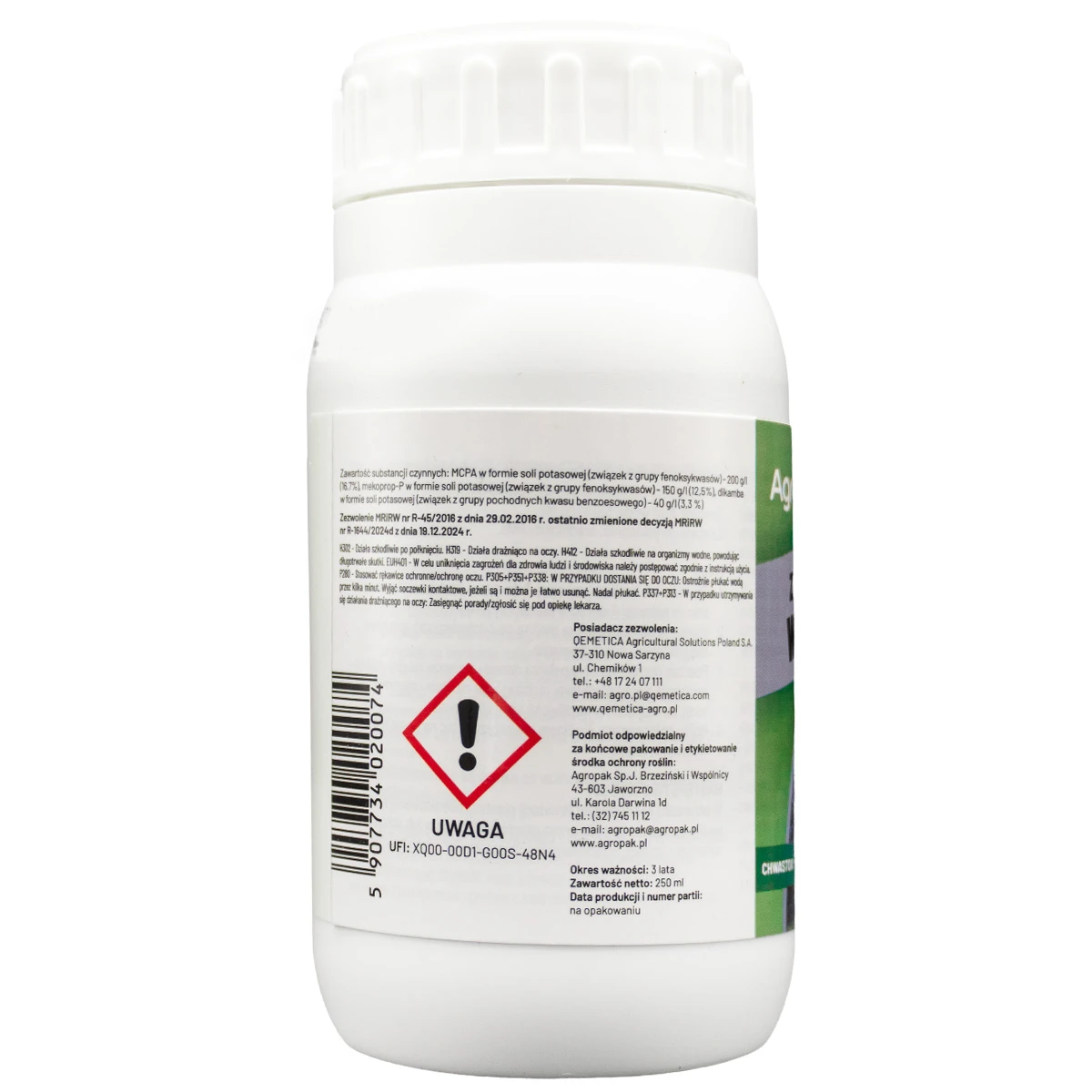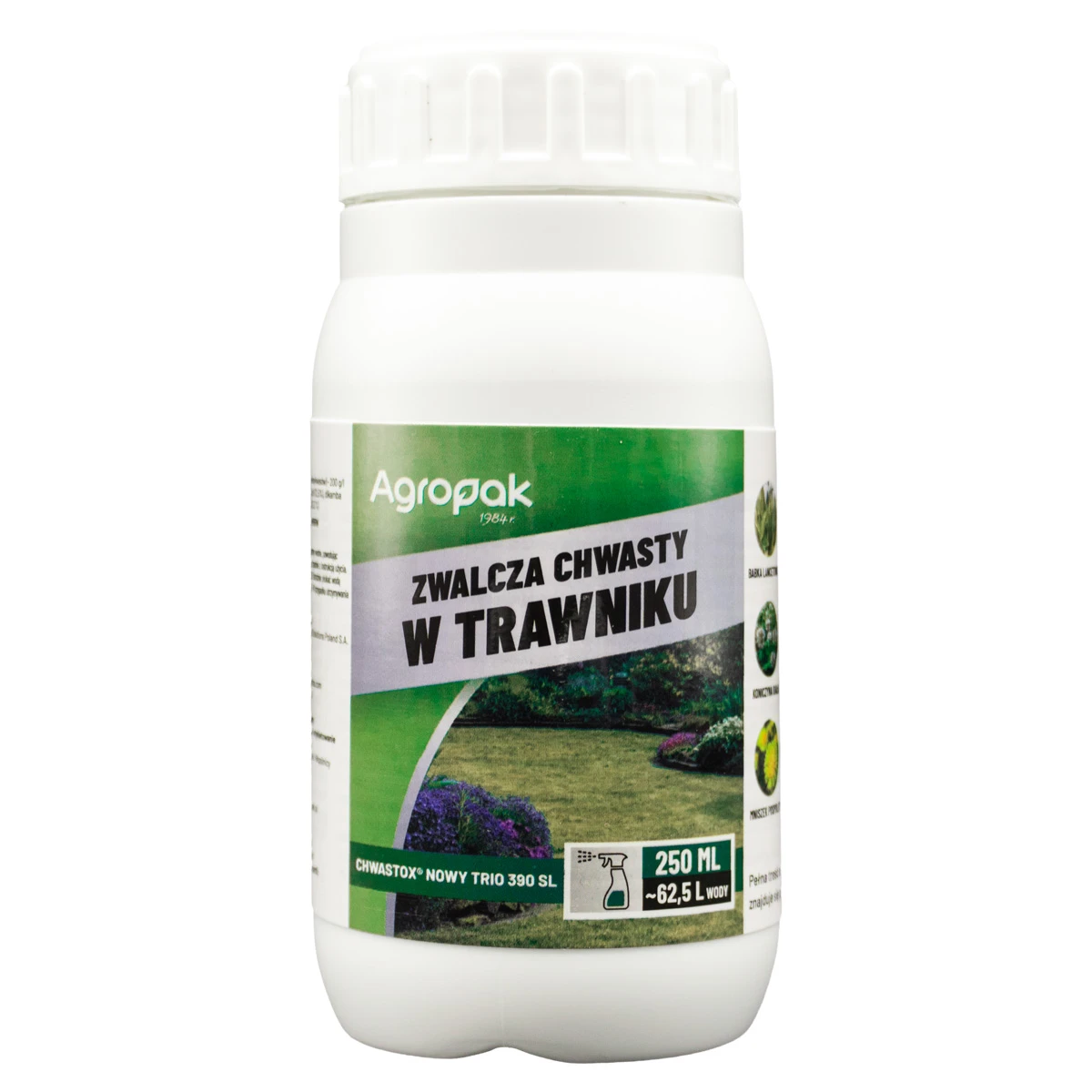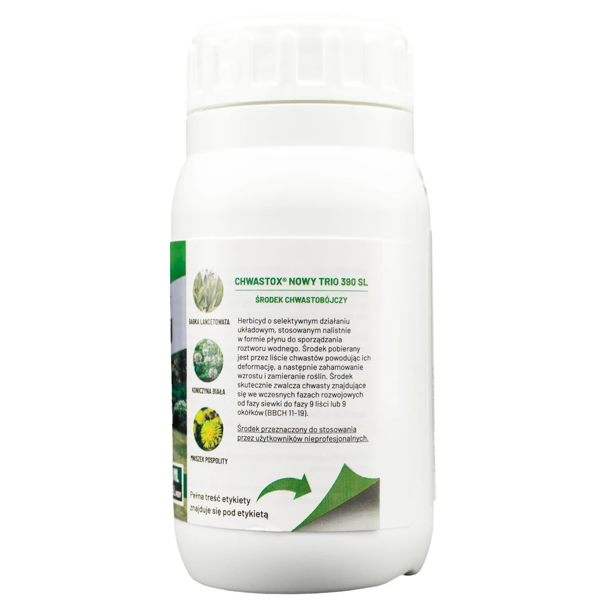 Chwastox Nowy Trio 390 SL to selektywny herbicyd w formie koncentratu do sporządzania roztworu wodnego, przeznaczony do zwalczania chwastów dwuliściennych w uprawach rolniczych oraz na trawnikach. Trawnik to esencja estetyki ogrodu, wymagający pielęgnacji wolnej od chwastów. Chwastox Nowy Trio 390 SL skutecznie eliminuje chwasty, poprawiając warunki dla trawy i tworząc gęstą murawę. Ten herbicyd w płynie selektywnie niszczy chwasty bez szkody dla trawy, działając systemowo. Jego efektywność wzrasta w dobrych warunkach dla roślin, nie powodując uodparniania się chwastów.