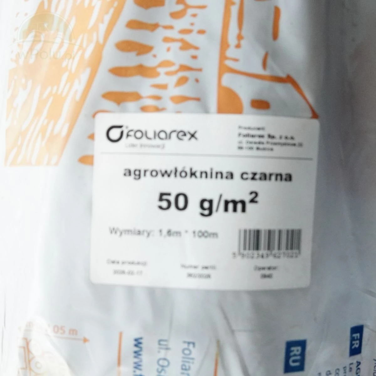 Agrowłóknina Czarna 1,6 m X 100 mb 50 g/m² Foliarex