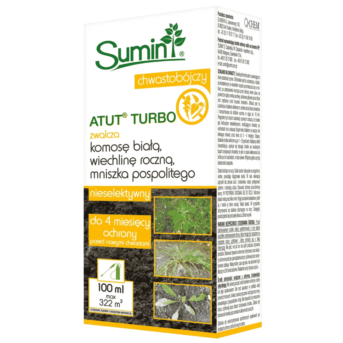 Atut® Turbo to nieselektywny herbicyd w formie koncentratu do sporządzania cieczy użytkowej, przeznaczony do zwalczania chwastów jedno- i dwuliściennych na terenach nieużytkowanych rolniczo. Działa zarówno po wschodach, jak i doglebowo, tworząc barierę ograniczającą kiełkowanie nowych chwastów przez okres 3–4 miesięcy. Produkt przeznaczony jest dla użytkowników profesjonalnych. Zastosowanie środka pozwala skutecznie zapobiegać pojawianiu się uciążliwych chwastów takich jak: komosa biała, wiechlina roczna, rumianek pospolity, tasznik pospolity, ostrożeń polny, mniszek pospolity. Produkt może być stosowany wyłącznie na terenach nieużytkowanych rolniczo (np. place, pobocza, nieużytki, tereny zieleni miejskiej o charakterze nieprodukcyjnym, obrzeża posesji, drogi dojazdowe, alejki, chodniki, tereny przy ogrodzeniach oraz inne powierzchnie nieprzeznaczone pod uprawy).