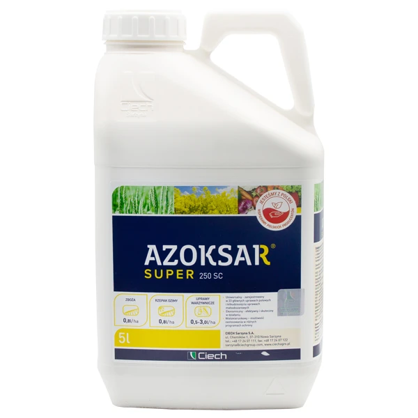 Środek grzybobójczy, koncentratu w powstaci stężonej zawiesiny do rozcieńczania wodą (SC). Działa wgłębnie i układowo, pobierany jest przez liście chwastów. Azoksar Super przeznaczony jest do stosowania przede wszystkim zapobiegawczego w zwalczaniu chorób powodowanych przez grzyby. Ten uniwersalny środek ma rejestrację w 23 głównych uprawach polowych i kilkudziesięciu uprawach małoobszarowych. Może być też stosowany w różnych programach ochrony.