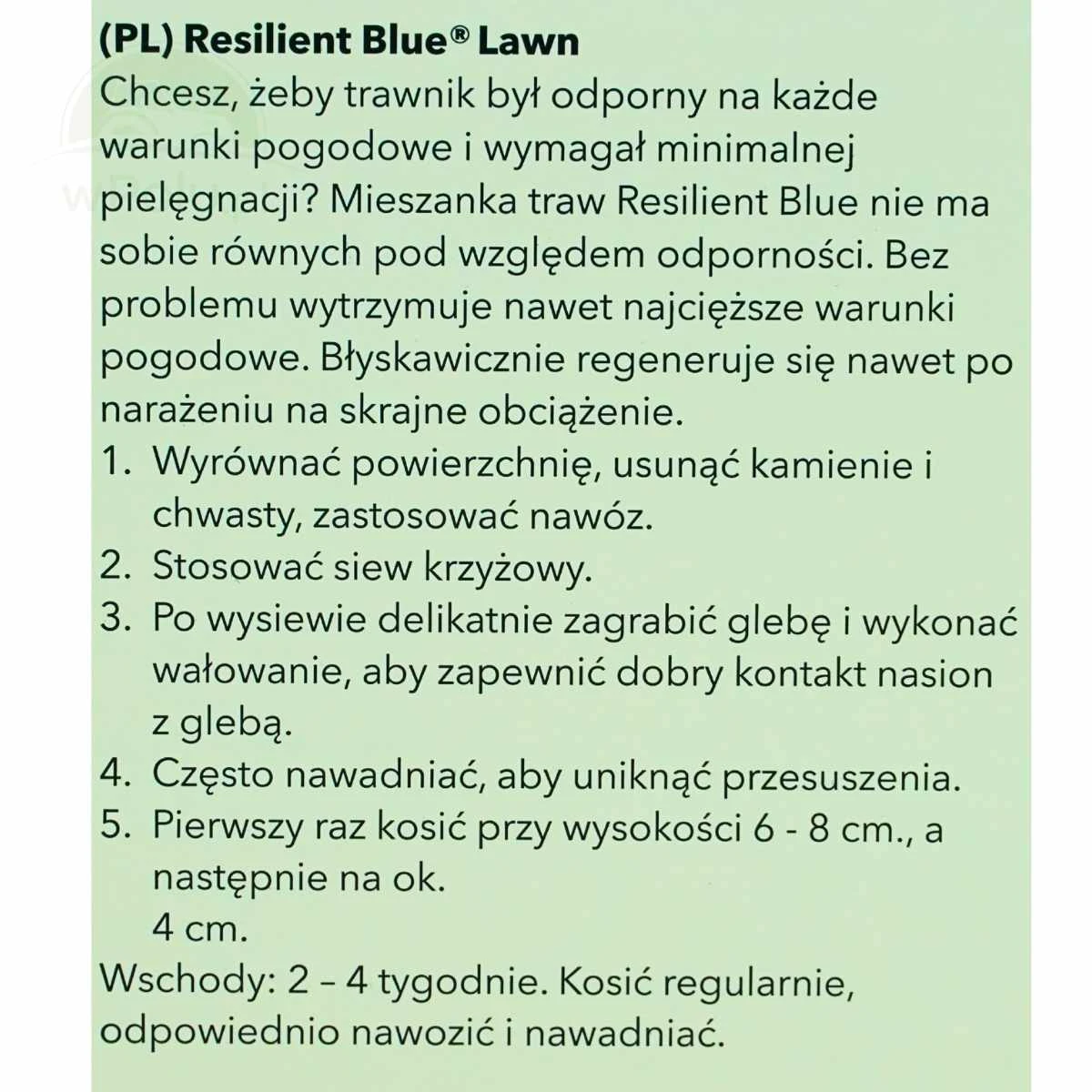 Mieszanka traw Barenbrug Resilient Blue Lawn to gwarancja trawnika wytrzymałego na ekstremalne warunki pogodowe. Ta innowacyjna mieszanka zapewnia ładny zielony trawnik bez względu na to, czy panuje okres upałów i suszy latem, czy też mróz zimą. Mieszanka Resilient Blue® Lawn jest bardzo odporna na intensywne użytkowanie i łatwo się regeneruje. Dzięki wyjątkowej odporności jest też mniej podatna na choroby. Z mieszanką Barenbrug Resilient Blue Lawn trawnik będzie zdrowszy i bardziej zielony przez cały rok!