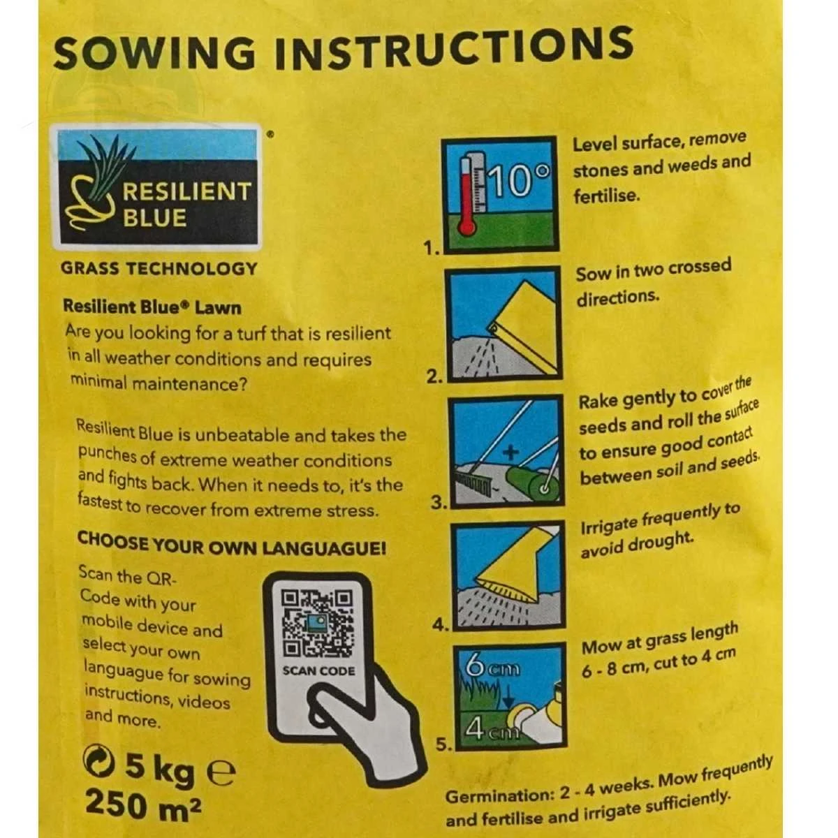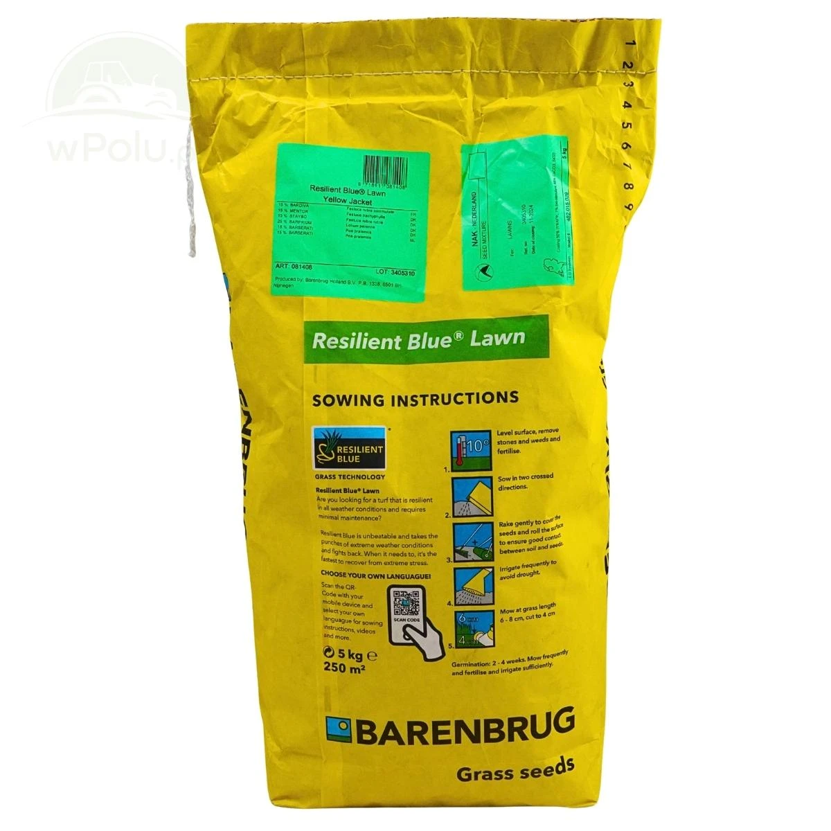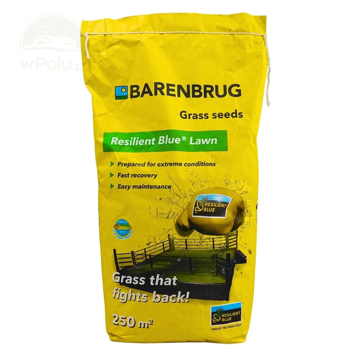 Nasiona trawy Resilient Blue® w opakowaniach 15 kg są wzmocnione powłoką Yellow Jacket Water Manager. Wyjątkowa powłoka Yellow Jacket Water manager zapewnia nasionom optymalną wilgotność w okresie kiełkowania. Szybkość kiełkowania rośliny jest uwarunkowana genetycznie i nie można na nią wpłynąć. Jednka mamy wpływ na efekty kiełkowania, poniewż one z kolei w dużej mierze zależą od dostępności wody. Zapewniając optymalną dostępność wody, zwiększamy szanse nasion na skuteczne kiełkowanie. Na etapie zadarniania roślina jest poddawana znacznemu stresowi abiotycznemu. Stres ten wywołany jest przez suszę, upały, wiatr, sól i często bywa zabójczy dla młodych roślin. Powłoka Yellow Jacket Manager reguluje równowagę wodną, a także temperaturę wokół rośliny, zwalczając tym samym stres abiotyczny!