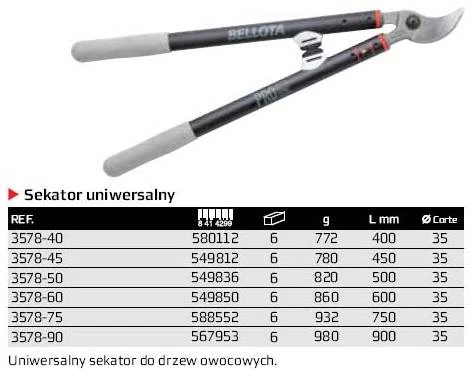 Sekator dwuręczny Bellota 3578-75 to profesjonalne narzędzie przeznaczone do intensywnego użytkowania przy cięciu winorośli, drzew owocowych i oliwnych. Ostrze i przeciwostrze wykonane są z hartowanej stali o wysokiej odporności na zużycie, co gwarantuje długą żywotność i skuteczność cięcia. Specjalne polerowanie krawędzi tnących umożliwia łatwe i czyste cięcie, a opatentowany system regulacji ostrza i przeciwostrza „Easy Adjust” zapewnia precyzję, stabilność i prostą obsługę.