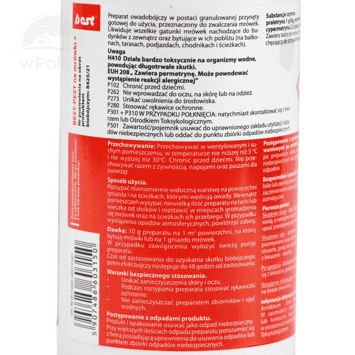 Preparat owadobójczy w postaci granulowanej przynęty przeznaczony do zwalczania mrówek. Insektycyd jest gotowy do użycia bezpośrednio po otwarciu. Zwalcza zarówno mrówki dostające się z zewnątrz do budynków, jak i te gnieżdżące się na balkonach, tarasach czy też chodnikach. Produkt ma bardzo szybki czas działania, a pełen efekt biobójczy uzyskujemy po 48 godzinach od użycia. Likwiduje gniazda wraz z kólową.