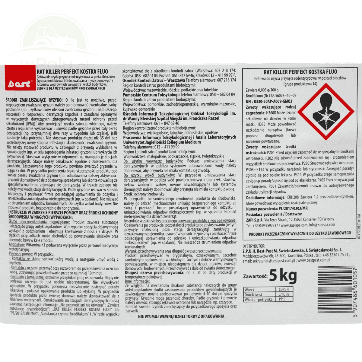 Rat Killer® Perfekt kostka fluo od Best - Pest to profesjonalny, skuteczny preparat do zwalczania myszy i szczurów, zapewniający łatwą identyfikację aktywności gryzoni dzięki technologii fluorescencyjnej. Wybierz nowoczesne rozwiązanie i skutecznie pozbądź się problemu szkodników.