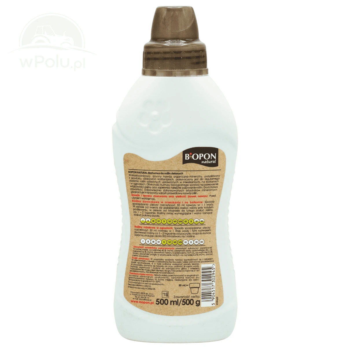 Rośliny ogrodowe: rozcieńczyć 120ml produktu w 1 litrze wody. Stosować w okresie od kwietnia do sierpnia, raz w tygodniu, w ilości ok. 2l roztworu na 1m2.