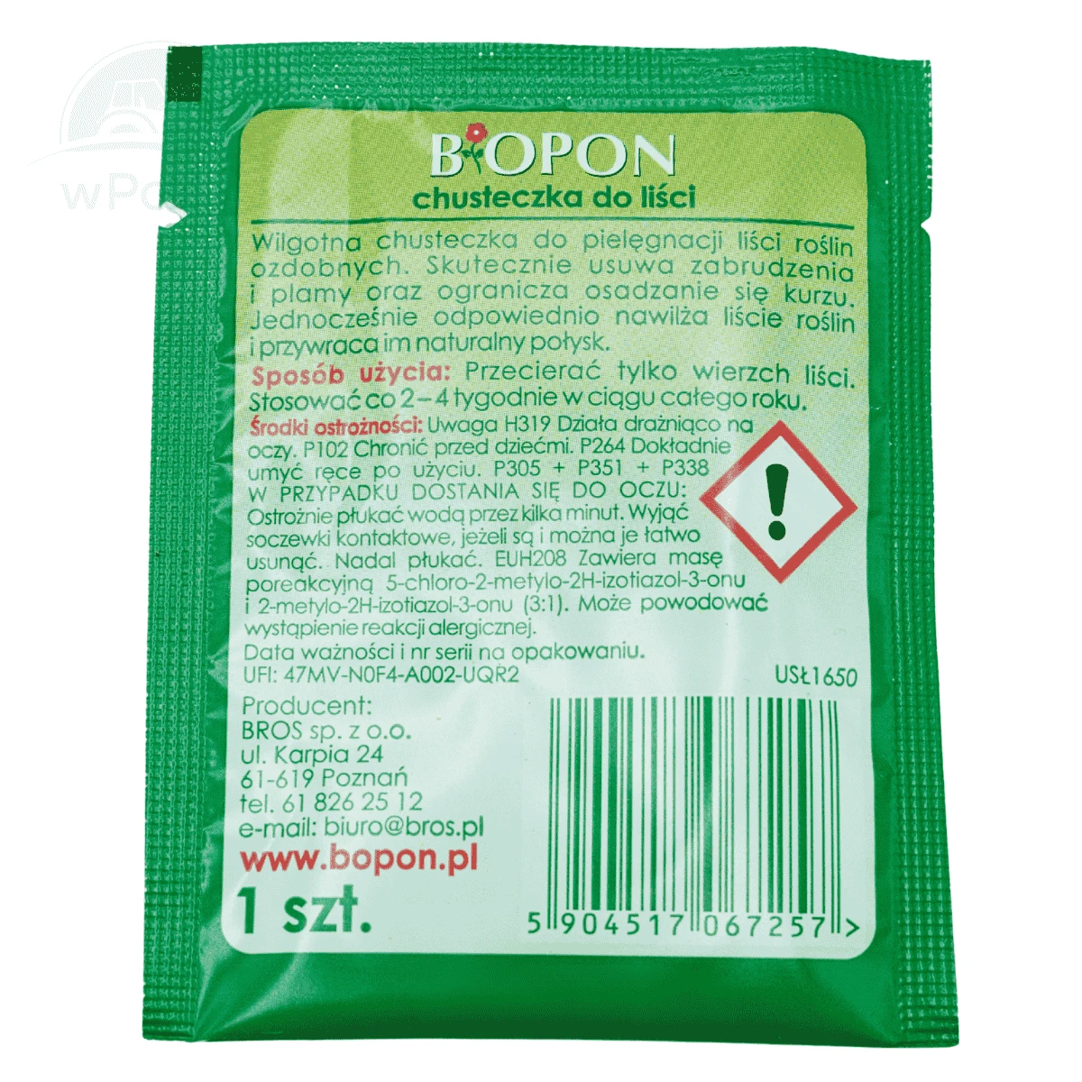 Biopon chusteczki idealnie nadają się do pielęgnacji liści roślin ozdobnych. Czyści, nabłyszcza i pielęgnuje oraz ogranicza osadzanie się kurzu.