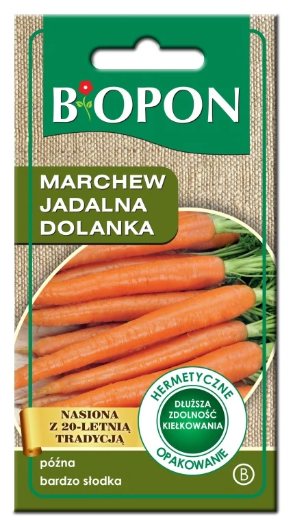 Marchew Dolanka, to odmiana późna, plenna. Okres wegetacji ok. 150 dni. Korzeń długości 17 – 24 cm dobrze wybarwiony z wysoką zawartością karotenu i cukru. Przydatna również do przechowywania. Optymalna pora do wysiewu to czas marzec - maj bezpośrednio do gruntu. Termin zbioru przypada na początek sierpnia. Marchew można zbierać do końca października.