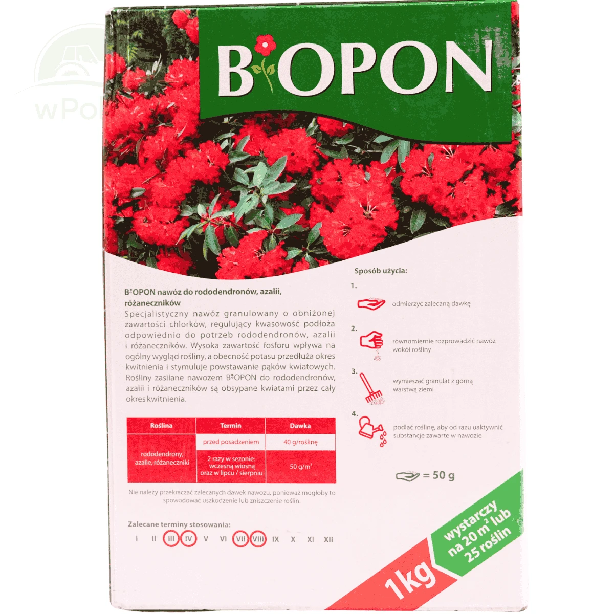 1 kg nawozu wystarczy na 25 m2 lub 25 roślin