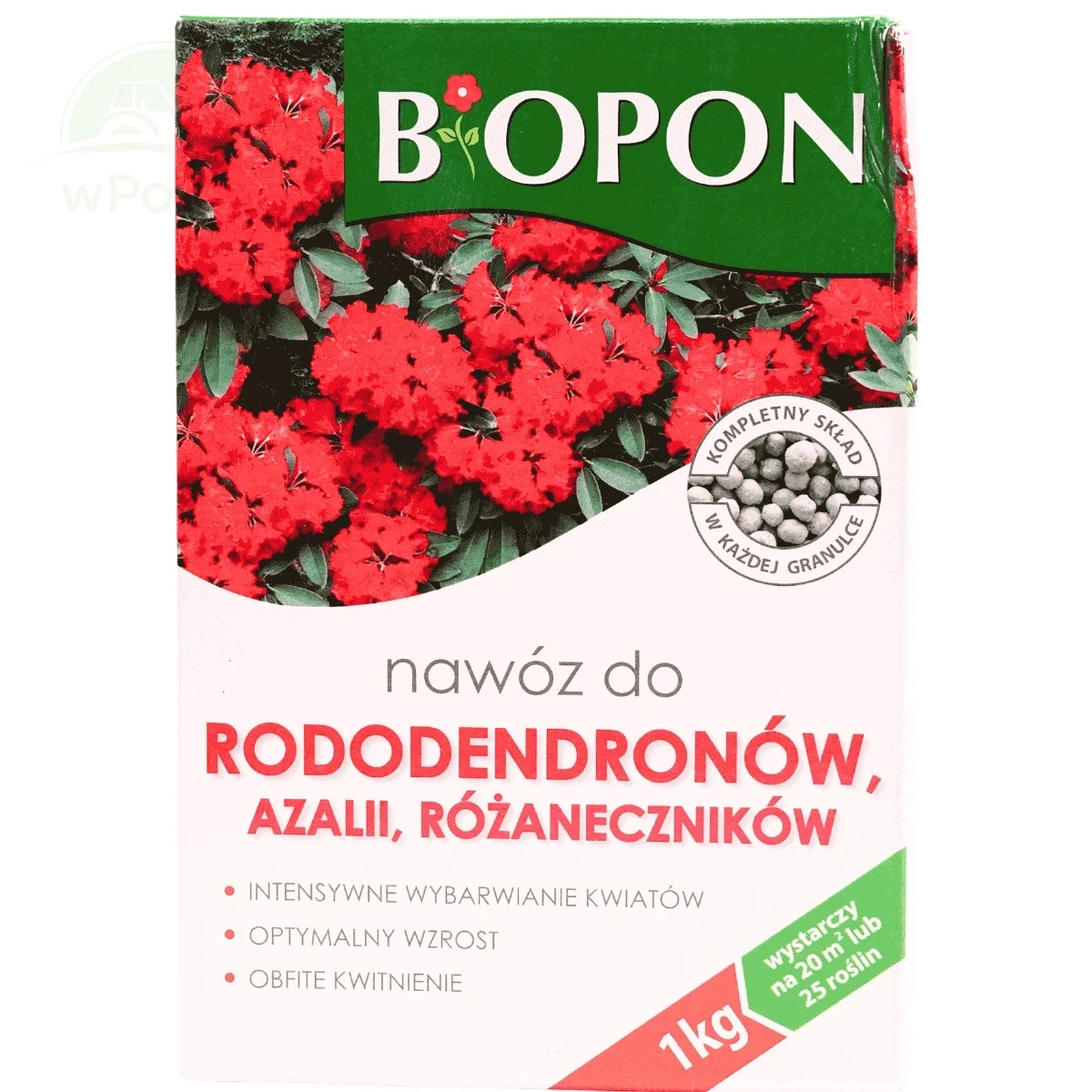Regularne stosowanie nawozu wspiera intensywne kwitnienie, poprawia kondycję krzewów oraz wpływa na ich estetyczny, zwarty pokrój. Produkt może być stosowany zarówno przed posadzeniem roślin, jak i w trakcie sezonu wegetacyjnego.