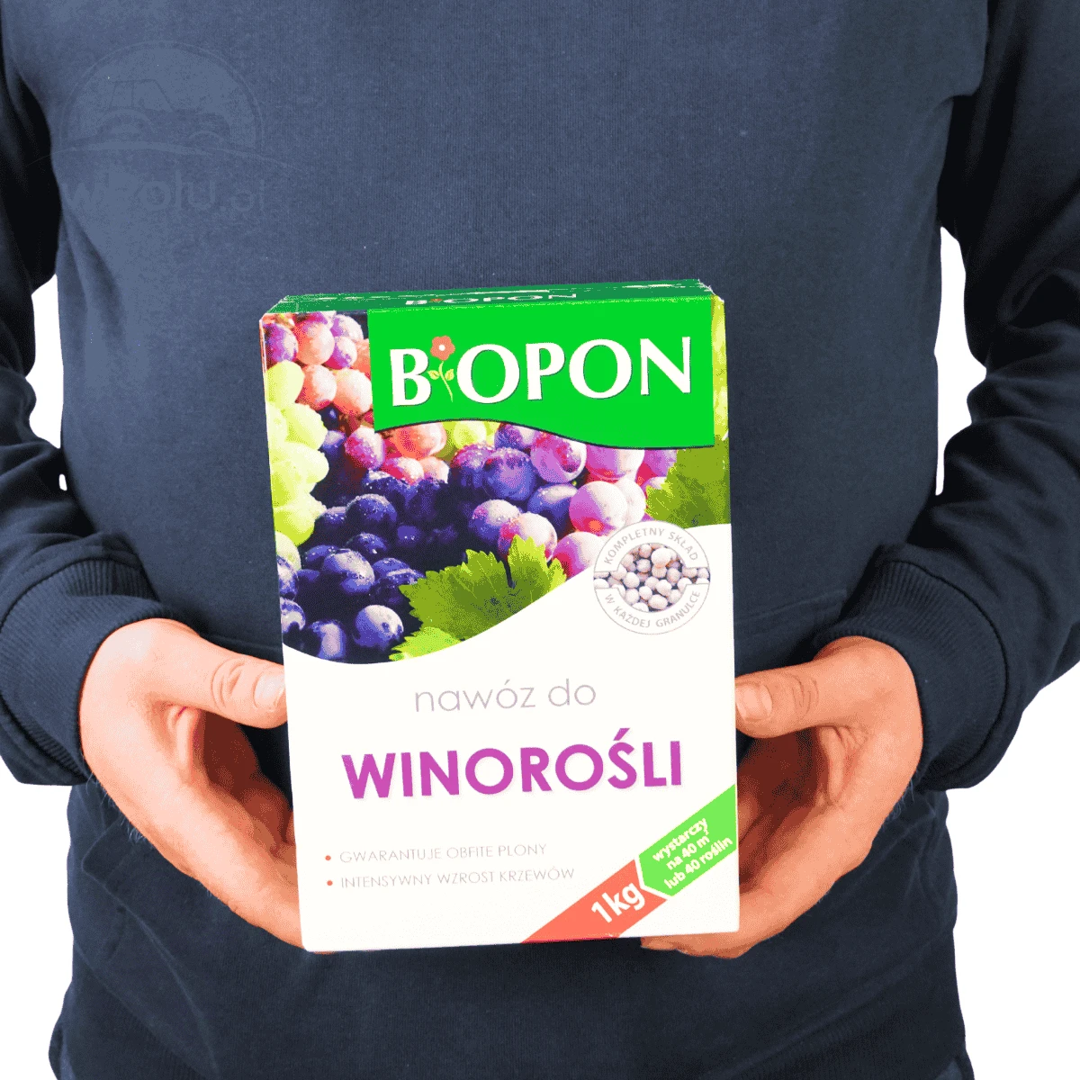 Nawóz do winorośli Biopon 1 kg to granulowany nawóz mineralny opracowany specjalnie z myślą o potrzebach krzewów winorośli. Zawiera odpowiednio dobrane składniki odżywcze, które wpływają na prawidłowy rozwój roślin, intensyfikację wzrostu pędów oraz zwiększenie liczby i jakości owoców. Regularne stosowanie nawozu zapewnia bujne ulistnienie, mocny system korzeniowy i zdrowe grona o intensywnej barwie.