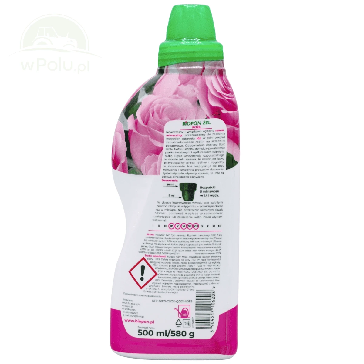 Nowoczesny i wyjątkowo wydajny nawóz mineralny, przeznaczony do zasilania wszystkich gatunków róż. Odpowiednio dobrana ilość azotu, fosforu i potasu stymuluje powstawanie pąków kwiatowych i wydłuża okres kwitnienia roślin. W pełni pokrywa zapotrzebowanie roślin na składniki pokarmowe. Gęsta konsystencja rozpuszczalnego w wodzie żelu sprawia, że nawóz jest łatwo przyswajalny przez rośliny i wygodny w użyciu. Systematycznie używany sprawia, że róże są zdrowe, silne i dobrze odżywione. Nie rozpryskuje się przy nalewaniu i umożliwia precyzyjne dozowanie.
