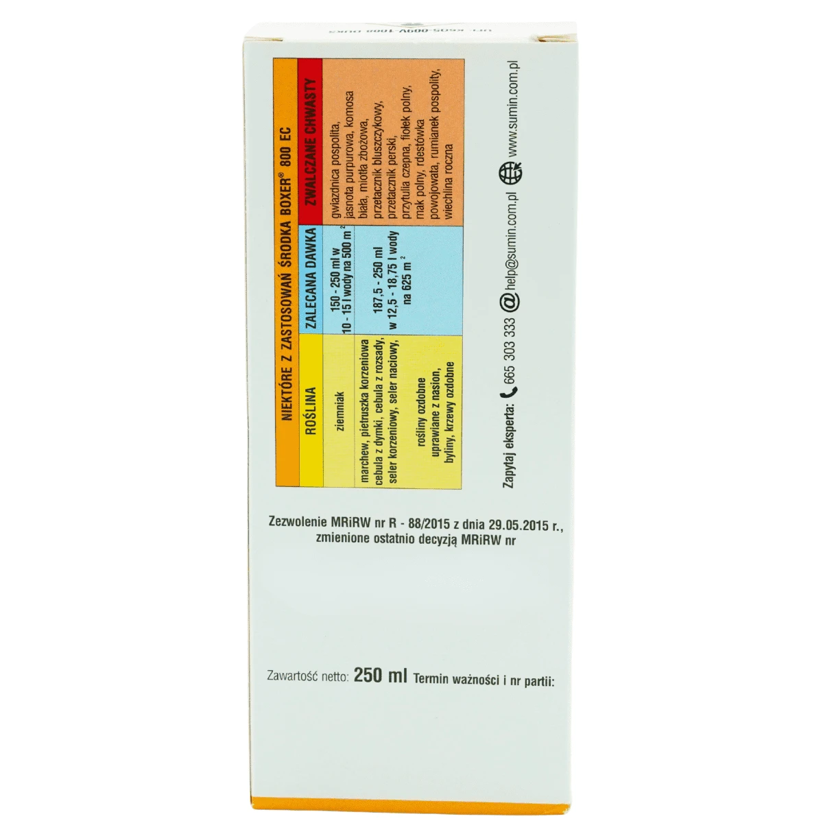 Boxer® 800 EC umożliwia szerokie spektrum zastosowań – od upraw polowych po warzywnicze i zielarskie. Produkt można stosować przedwschodowo oraz powschodowo, zależnie od gatunku rośliny i fazy jej rozwoju. Preparat daje też swobodę w planowaniu płodozmianu, ponieważ nie wprowadza ograniczeń dotyczących upraw następczych. Skutecznie zwalcza liczne gatunki chwastów, takie jak babka lancetowata, przytulia czepna, gwiazdnica pospolita, koniczyna biała czy maruna bezwonna. Dzięki temu stanowi kompleksowe narzędzie do ochrony upraw, szczególnie cenne w uprawie ziemniaka, cebuli, marchwi, pora, selera oraz roślin bobowatych i oleistych.
