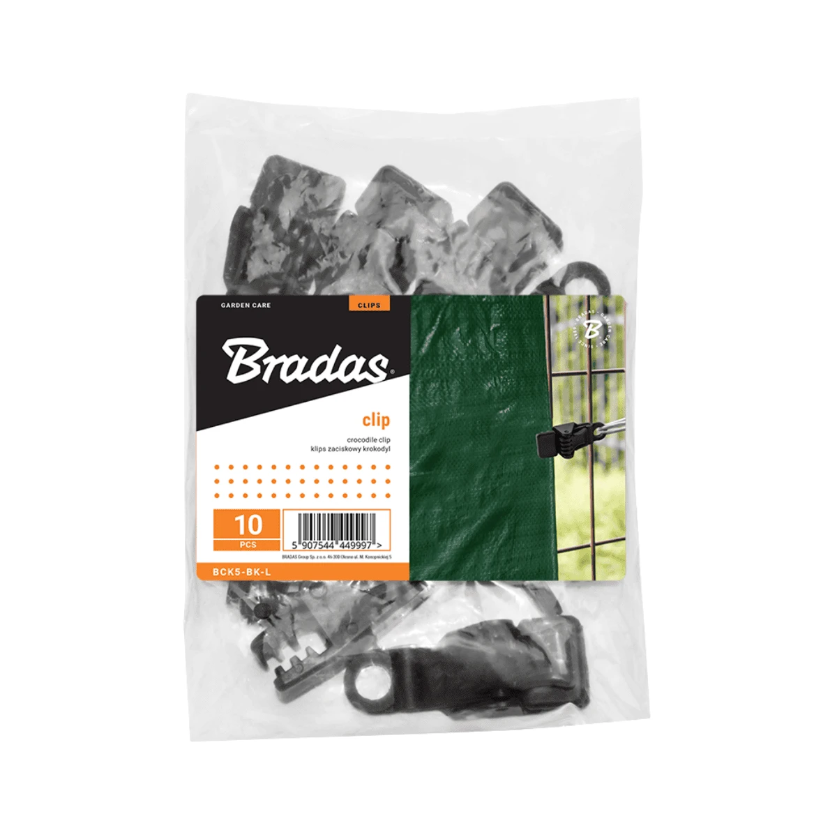 Klips posiada oczko montażowe, które umożliwia szybkie i łatwe przymocowanie linki elastycznej, gumy lub haka. Dzięki prostemu mechanizmowi zacisku można go wielokrotnie stosować, co czyni go praktycznym rozwiązaniem do zastosowań w rolnictwie, transporcie, budownictwie czy ogrodnictwie. Produkt sprzedawany jest w zestawie zawierającym 10 sztuk.