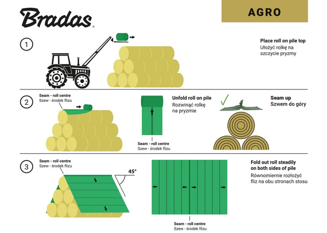 Fliz doskonale sprawdza się w każdym gospodarstwie rolnym – zarówno przy okrywaniu stogów siana i słomy, jak i przy czasowym magazynowaniu pasz. To niezawodne zabezpieczenie, które gwarantuje długotrwałą ochronę i wysoką trwałość niezależnie od warunków pogodowych. Zastosowanie flizu ochronnego pozwala bezpiecznie magazynować bele na zewnątrz bez konieczności budowy dodatkowych wiat czy zadaszeń. To rozwiązanie, które znacząco obniża koszty przechowywania i zapewnia wygodę użytkowania. Dzięki wysokiej jakości wykonania produkt może być wielokrotnie używany, co przekłada się na realną oszczędność czasu i pieniędzy w gospodarstwie.