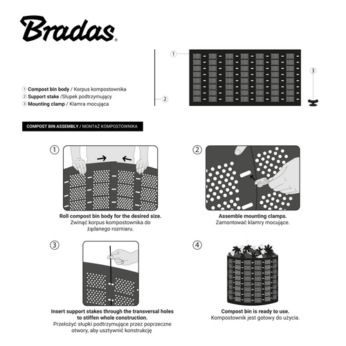 Proces montażu kompostownika przedstawiony na grafikach poniżej: