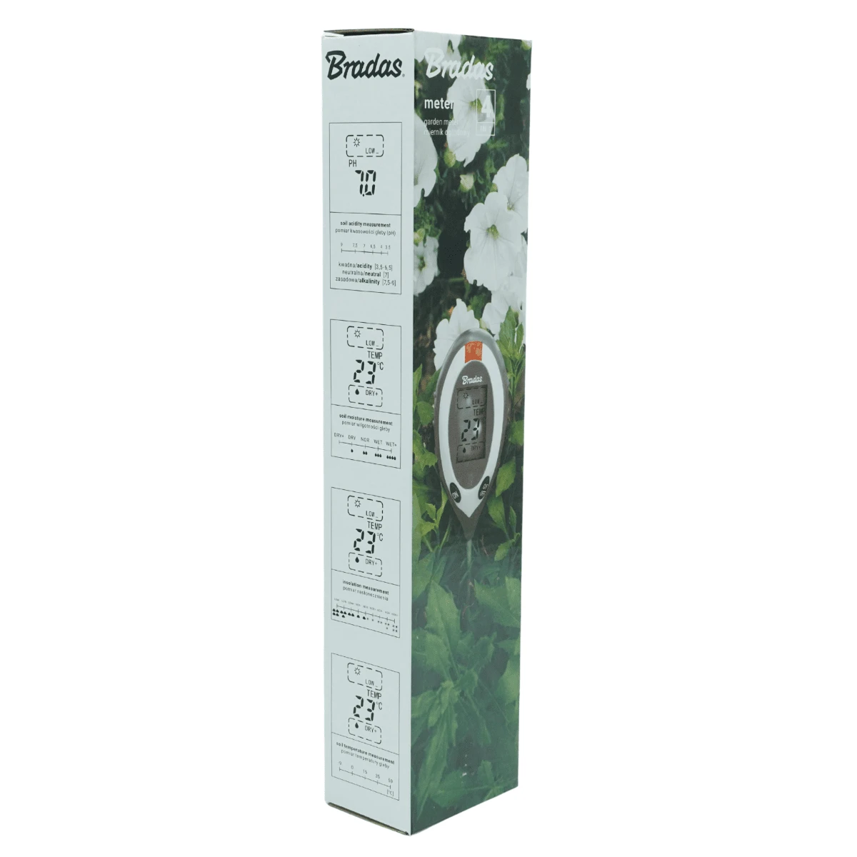 Urządzenie wyposażone jest w czytelny wyświetlacz LCD, który zapewnia wygodny i przejrzysty odczyt wyników. Metalowa sonda o długości 20 cm umożliwia dokładny pomiar na różnych głębokościach podłoża. Miernik jest prosty w obsłudze, lekki i poręczny, co czyni go doskonałym narzędziem zarówno dla amatorów ogrodnictwa, jak i profesjonalnych hodowców.