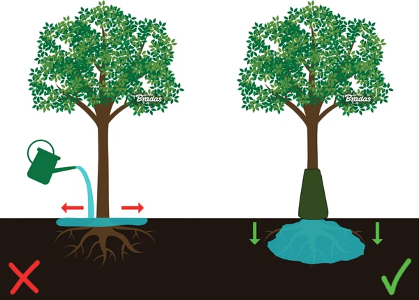 Torba została zaprojektowana do powolnego i precyzyjnego nawadniania drzew. Dzięki metodzie kropelkowej woda dociera do głębszych warstw gleby, co sprzyja prawidłowemu rozwojowi systemu korzeniowego i zwiększa szanse młodych drzew na przyjęcie się w nowym miejscu.