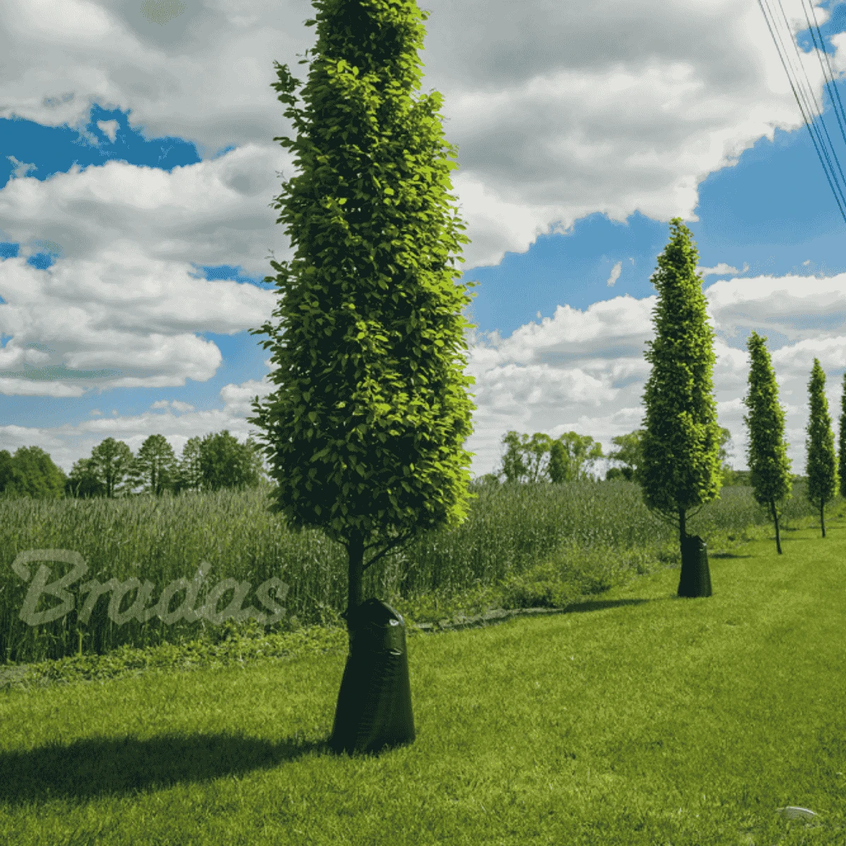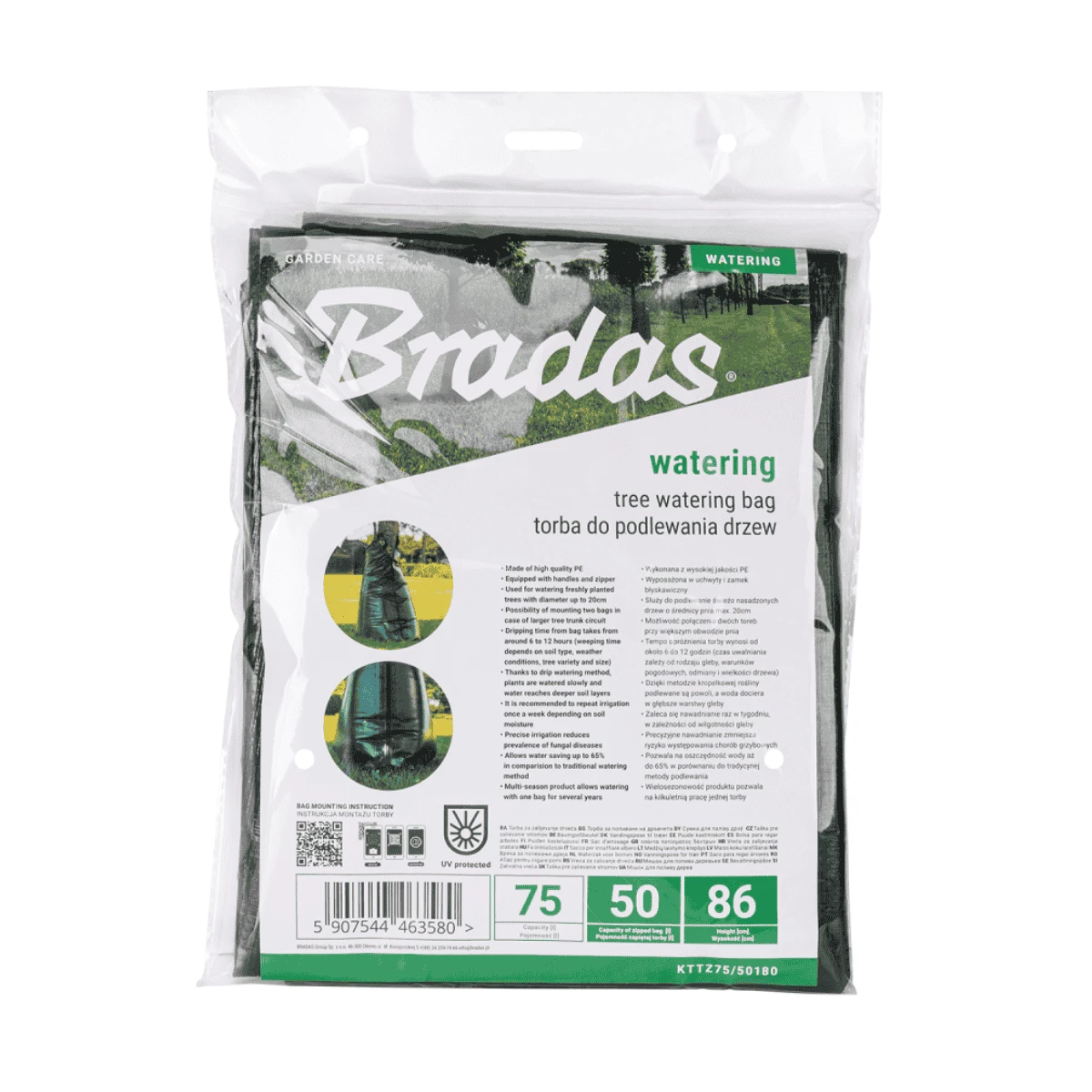 Torba do podlewania drzew 75L to praktyczne i wydajne rozwiązanie, które ułatwia pielęgnację świeżo posadzonych drzew. Wykonana z wytrzymałego polietylenu (PE), umożliwia stopniowe uwalnianie wody, co pozwala na głębokie nawodnienie gleby. Dla drzew o większym obwodzie pnia istnieje możliwość łączenia kilku toreb. Dzięki zastosowaniu torby do podlewania można osiągnąć widoczną redukcję zużycia wody, oszczędność sięga nawet do 65 %. Stosowanie torby do podlewania pozwala zaoszczędzić czas i wodę, ogranicza ryzyko chorób grzybowych oraz wspiera zdrowy i szybki rozwój roślin. Dzięki równomiernemu podlewaniu drzewa są bardziej odporne na stres i przymrozki.
