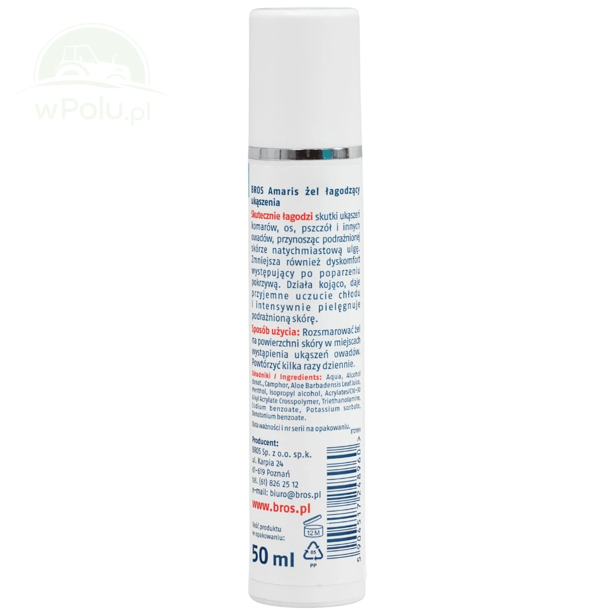 Bros Amaris Żel to skuteczny i delikatny preparat łagodzący objawy po ukąszeniach owadów takich jak komary, meszki, osy czy mrówki. Przeznaczony do stosowania bezpośrednio na skórę, przynosi szybką ulgę w przypadku swędzenia, pieczenia oraz zaczerwienienia. Formuła żelu oparta jest na składnikach kojących i chłodzących, dzięki czemu działa miejscowo i przynosi natychmiastowe uczucie komfortu.