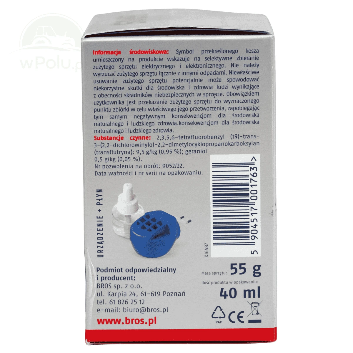 BROS Elektro + płyn na komary to niezawodne urządzenie zapewniające skuteczną i długotrwałą ochronę przed komarami w pomieszczeniach. Dzięki prostocie obsługi i wysokiej efektywności gwarantuje spokojny sen bez uciążliwych owadów.
