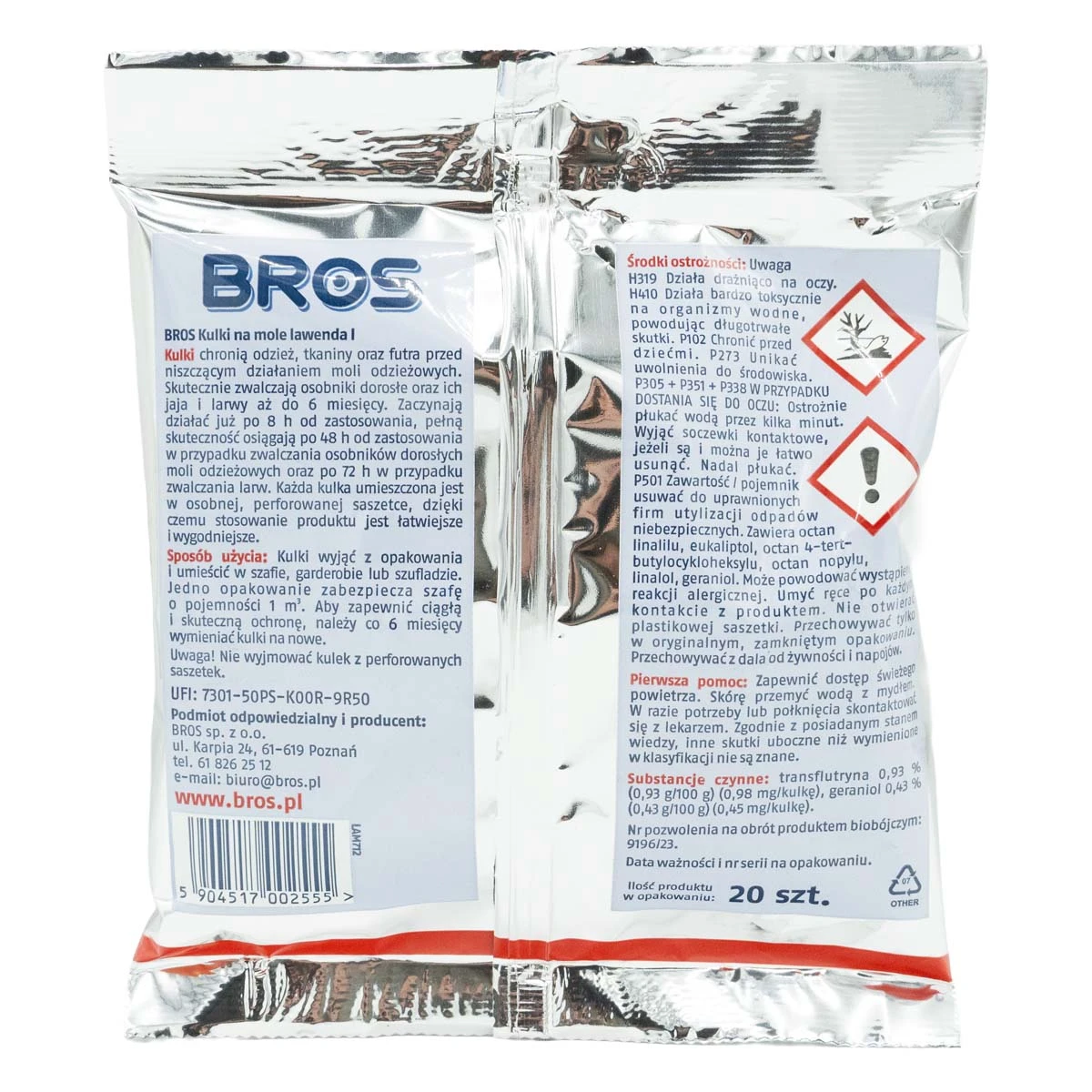 DO RABATU NA WYSYŁKĘ: 1000 złKulki na mole Bros stanowią sprawdzony sposób ochrony odzieży, tkanin oraz futer przed molami odzieżowymi. Produkt działa kompleksowo – eliminuje dorosłe owady, a także ich jaja i larwy, zapewniając bezpieczeństwo przechowywanej garderoby nawet przez 6 miesięcy. Skuteczność widoczna jest już po 48 godzinach od umieszczenia kulek w szafie lub szufladzie. Każda porcja preparatu znajduje się w osobnej, perforowanej saszetce, co ułatwia stosowanie i zapobiega bezpośredniemu kontaktowi z substancją czynną.