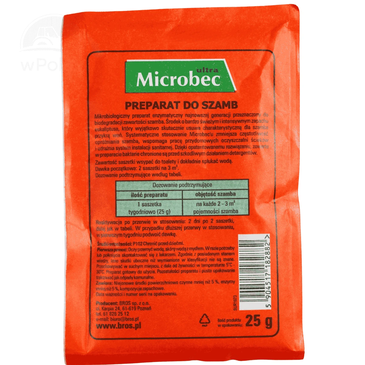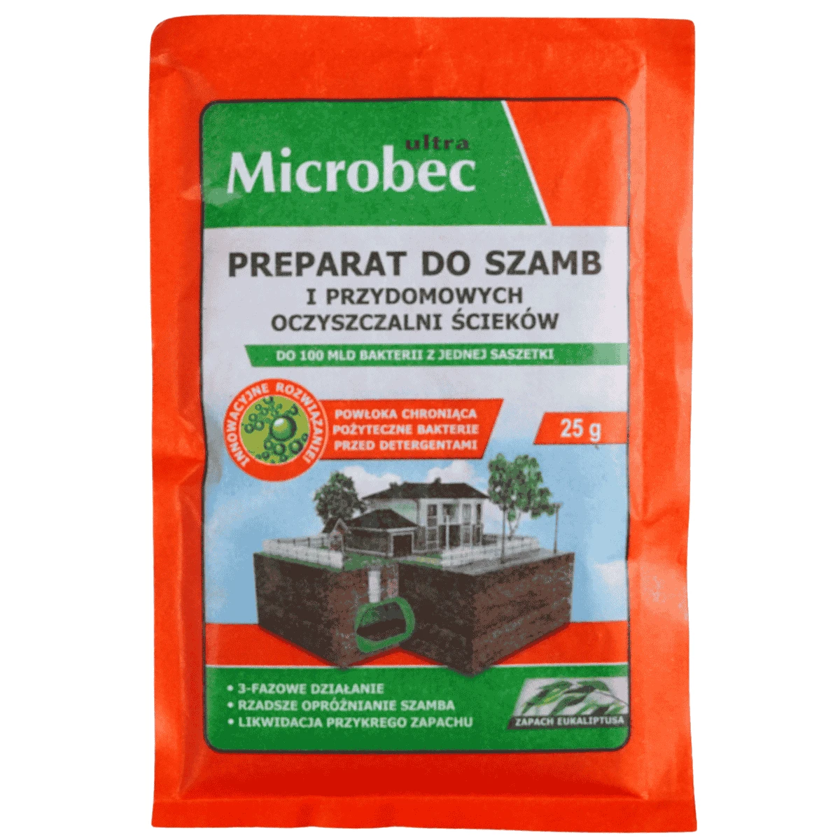 Microbec Ultra to nowoczesny, enzymatyczny preparat przeznaczony do biodegradacji zawartości szamb i przydomowych oczyszczalni ścieków. Dzięki innowacyjnej technologii mikroorganizmów zamkniętych w ochronnej powłoce, działa skutecznie nawet w obecności detergentów. Posiada świeży zapach eukaliptusa, który neutralizuje nieprzyjemne wonie.