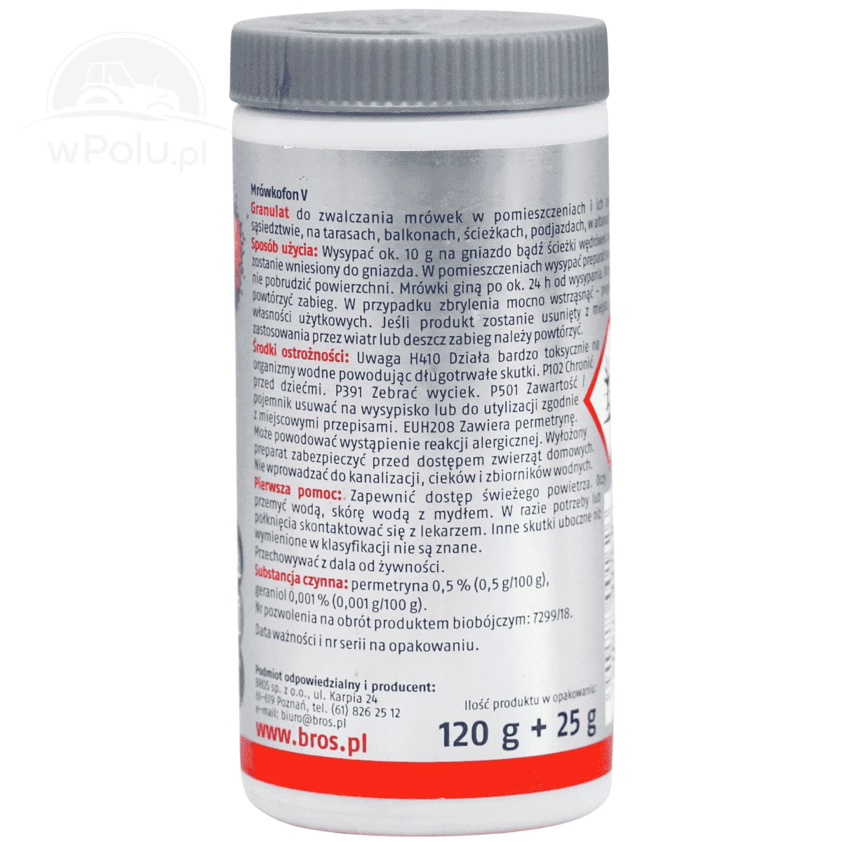 Mrówkofon od firmy Bros to granulat do zwalczania mrówek w pomieszczeniach i ich bezpośrednim sąsiedztwie, na tarasach, balkonach, ścieżkach, podjazdach, w altanach itp.