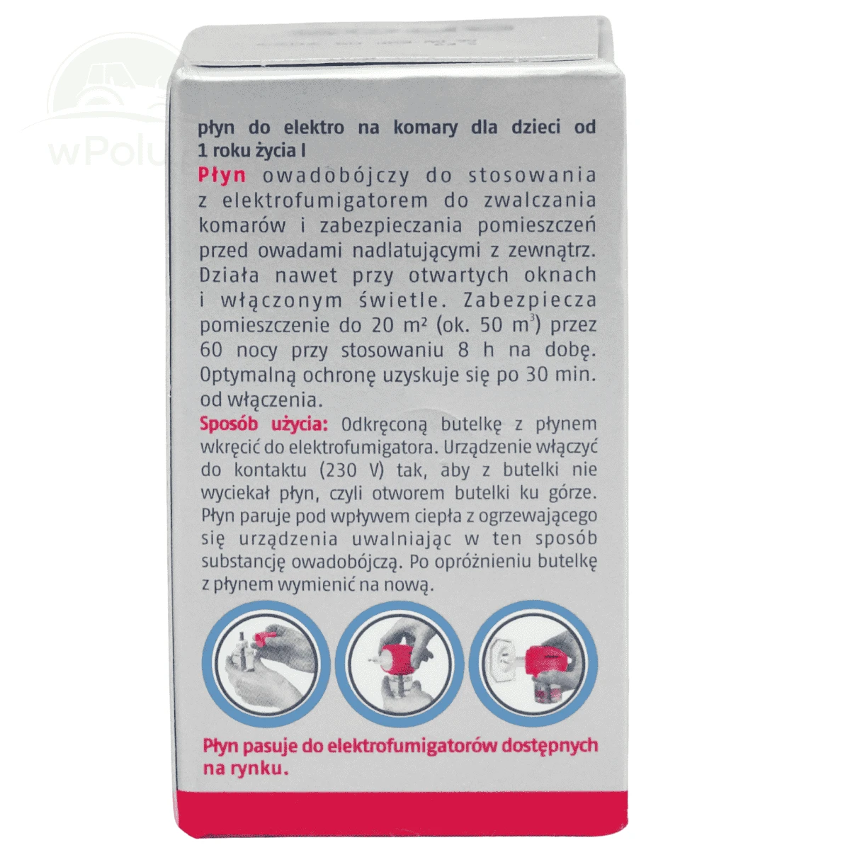 Płyn skutecznie zwalcza komary w pomieszczeniach, zabezpieczając wnętrza przed owadami nadlatującymi z zewnątrz. Zapewnia długotrwałą ochronę także przy otwartych oknach i włączonym świetle, co czyni go wygodnym rozwiązaniem na letnie wieczory.
