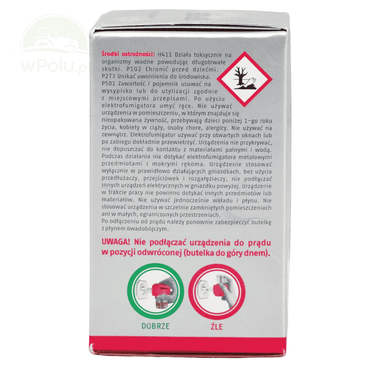 Uwaga! Nie podłączać urządzenia w pozycji odwróconej (butelka do góry dnem). Nie stosować dłużej niż 12 h na dobę.