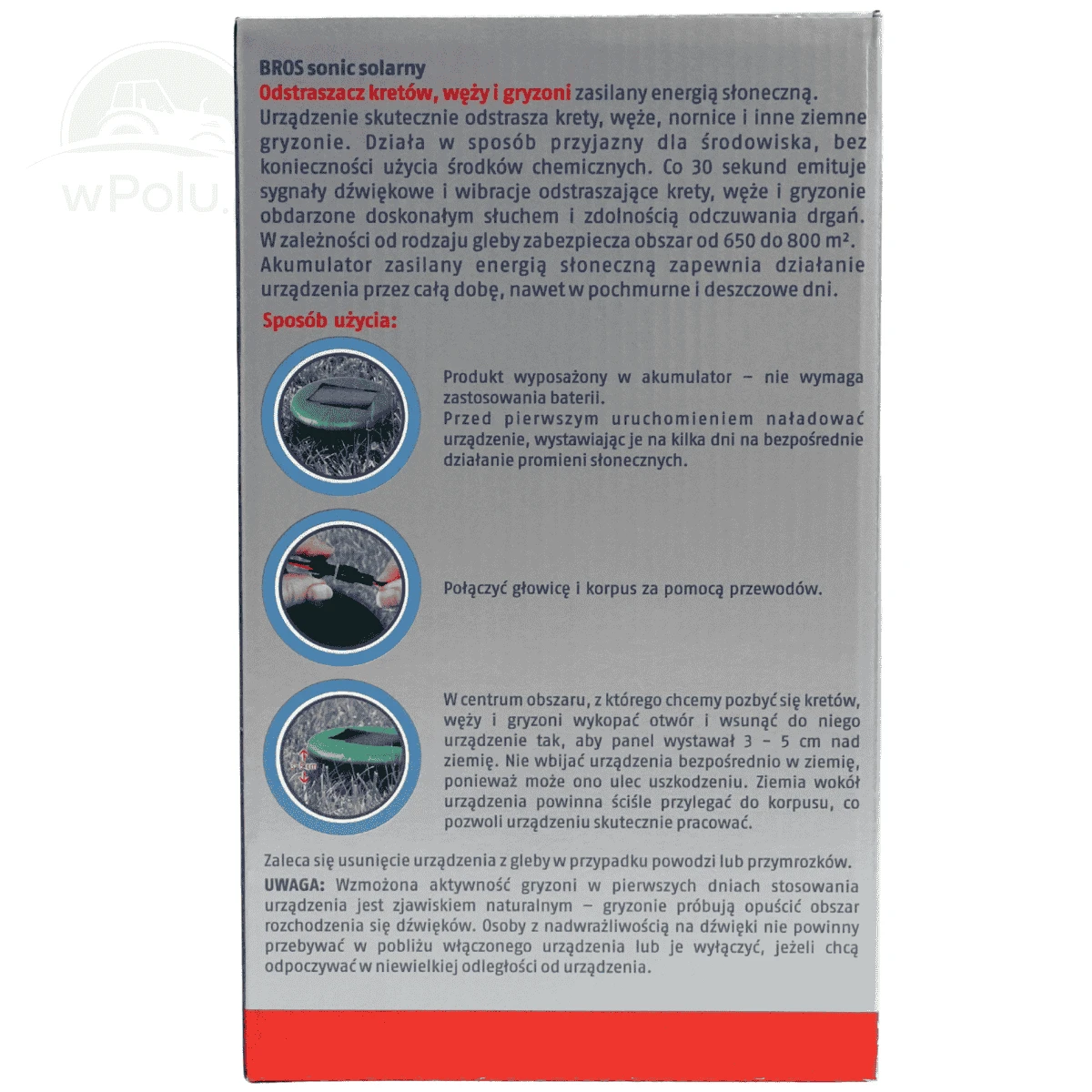 Odstraszacz na krety zasilany energią słoneczną. Akumulator zapewnia nieprzerwaną pracę w dzień i w nocy. Emituje fale dźwiękowe oraz drgania, które skutecznie odstraszają szkodniki.