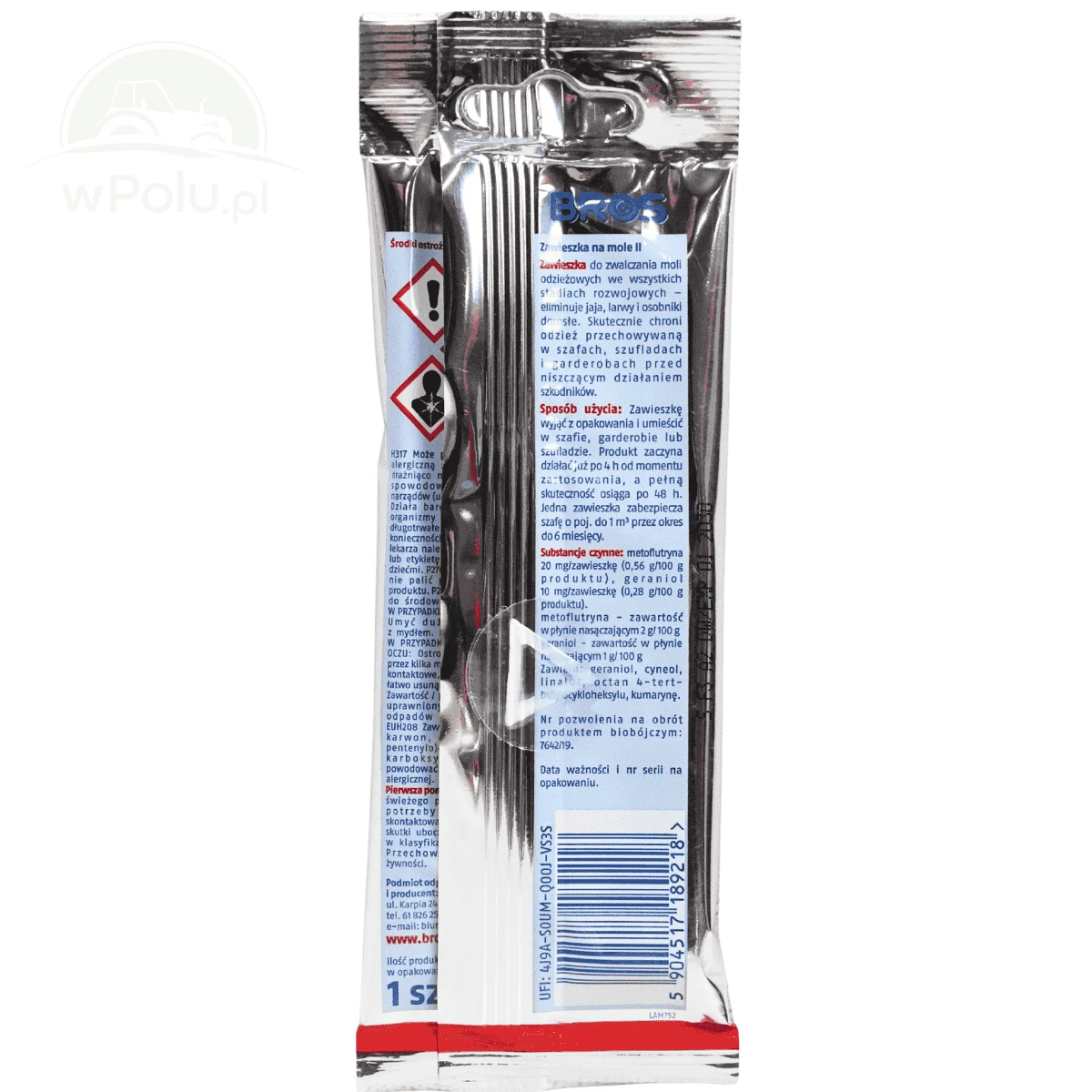 Ochrona działa nieprzerwanie do 3 miesięcy, przy czym pierwsze efekty wobec dorosłych osobników pojawiają się już po 4 godzinach od zawieszenia. Zgodnie z cyklem rozwojowym szkodnika, pełna skuteczność wobec larw występuje po 14 dniach, a wobec jaj po 21 dniach od zastosowania. Jedna zawieszka zabezpiecza przestrzeń do 1 m³; dla większych szaf należy użyć odpowiedniej liczby sztuk. Dla uzyskania optymalnego przepływu powietrza zaleca się zachowanie kilkucentymetrowego odstępu między zawieszką a ubraniami. Produkt dostępny także w innych wersjach zapachowych: cedr oraz kwiat pomarańczy.