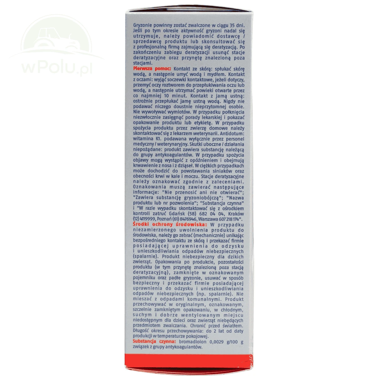 Zastosowany w trutce bromadiolon – antykoagulant drugiej generacji – działa z opóźnieniem, co pozwala na skuteczną eliminację całych populacji gryzoni bez wzbudzania ich niepokoju. Naturalny skład i wysoka atrakcyjność pokarmowa czynią preparat Bros idealnym wyborem do profesjonalnych i domowych zastosowań deratyzacyjnych.