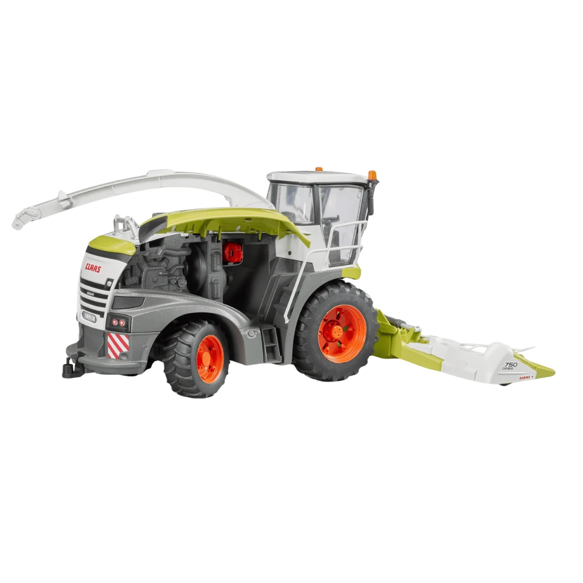 DO RABATU NA WYSYŁKĘ: 1000 złClaas Jaguar 900 sieczkarnia do kukurydzy – Bruder to szczegółowy model maszyny rolniczej w skali 1:16, wykonany z trwałego tworzywa ABS. Odwzorowuje charakterystyczną stylistykę oryginału: biało-zielone nadwozie CLAAS, pomarańczowe koła oraz duży, kukurydziany zespół żniwny z przodu. Kabina jest przeszklona, a boczne osłony można otworzyć, aby zobaczyć odwzorowany silnik. Solidna konstrukcja sprawia, że model nadaje się zarówno do zabawy, jak i do kolekcji.