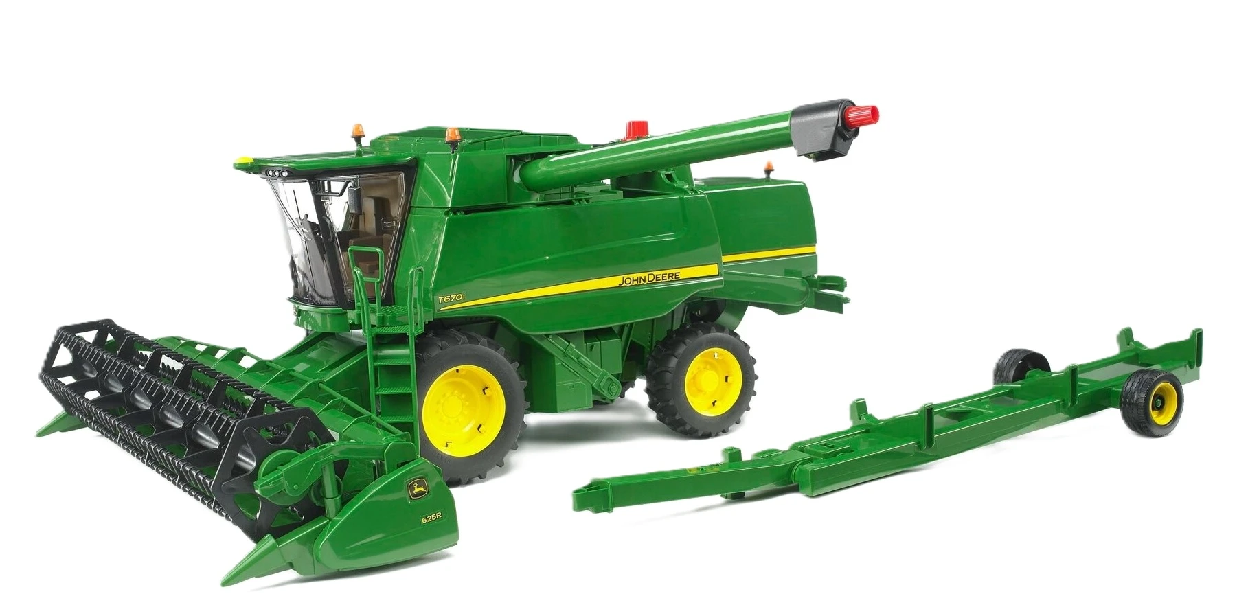 Do wyprodukowania zabawki wykorzystano tworzywa ABS. Kombajn wyposażony jest w zbiornik na ziarno z napędem śrubowym, dzięki czemu można poczuć się, jak prawdziwy rolnik i rozsiewać ziarno. W zestawie znajduje się także regulowana belka tnąca, którą można zdjąć i przetransportować na dołączonym wózku.