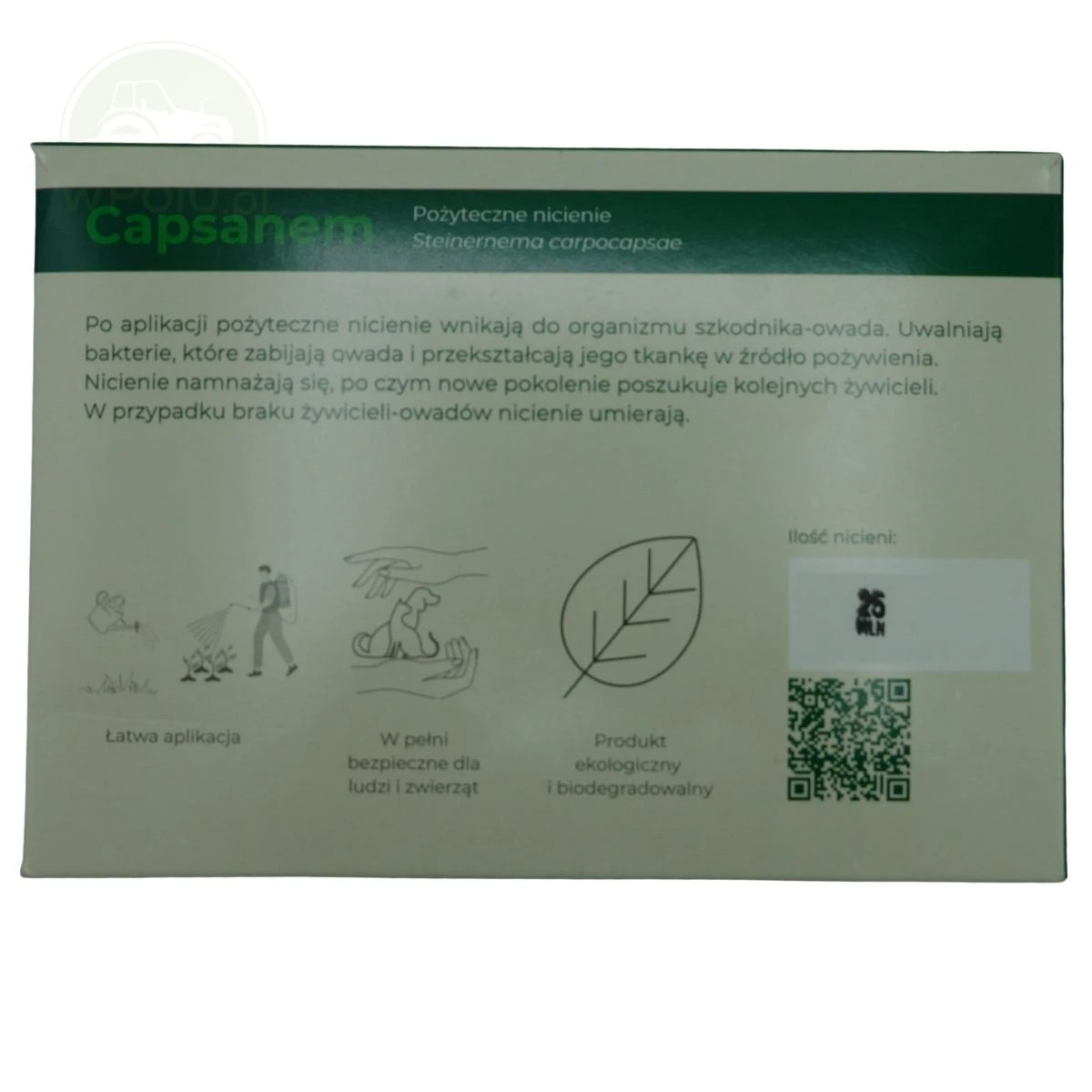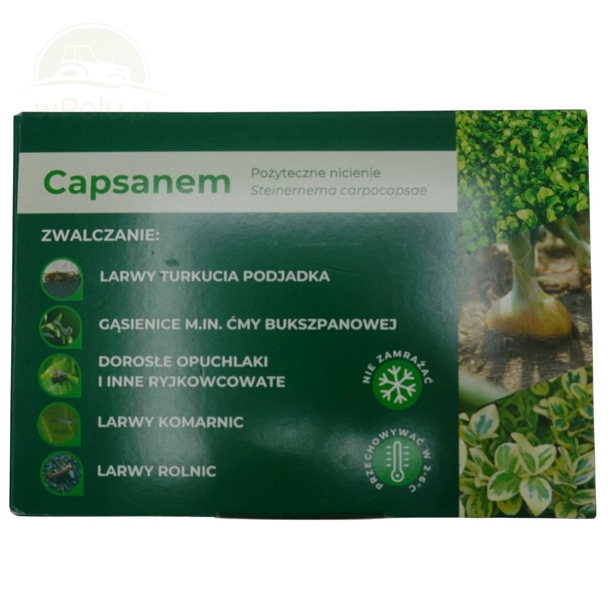 Capsanem zawiera pożyteczne nicienie entomopatogeniczne (0,6-1 mm) które stosowane są do biologicznego zwalcznia turkucia podjadka i innych szkodników glebowych oraz szkodników liści. Pozwala to na ochronę upraw bez stosowania środków chemicznych.