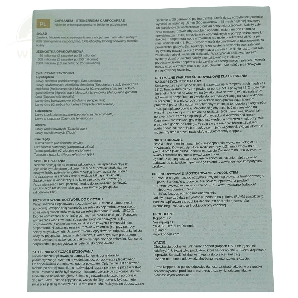 Capsanem zawiera pożyteczne nicienie entomopatogeniczne (0,6-1 mm) które stosowane są do biologicznego zwalcznia turkucia podjadka i innych szkodników glebowych oraz szkodników liści. Pozwala to na ochronę upraw bez stosowania środków chemicznych.