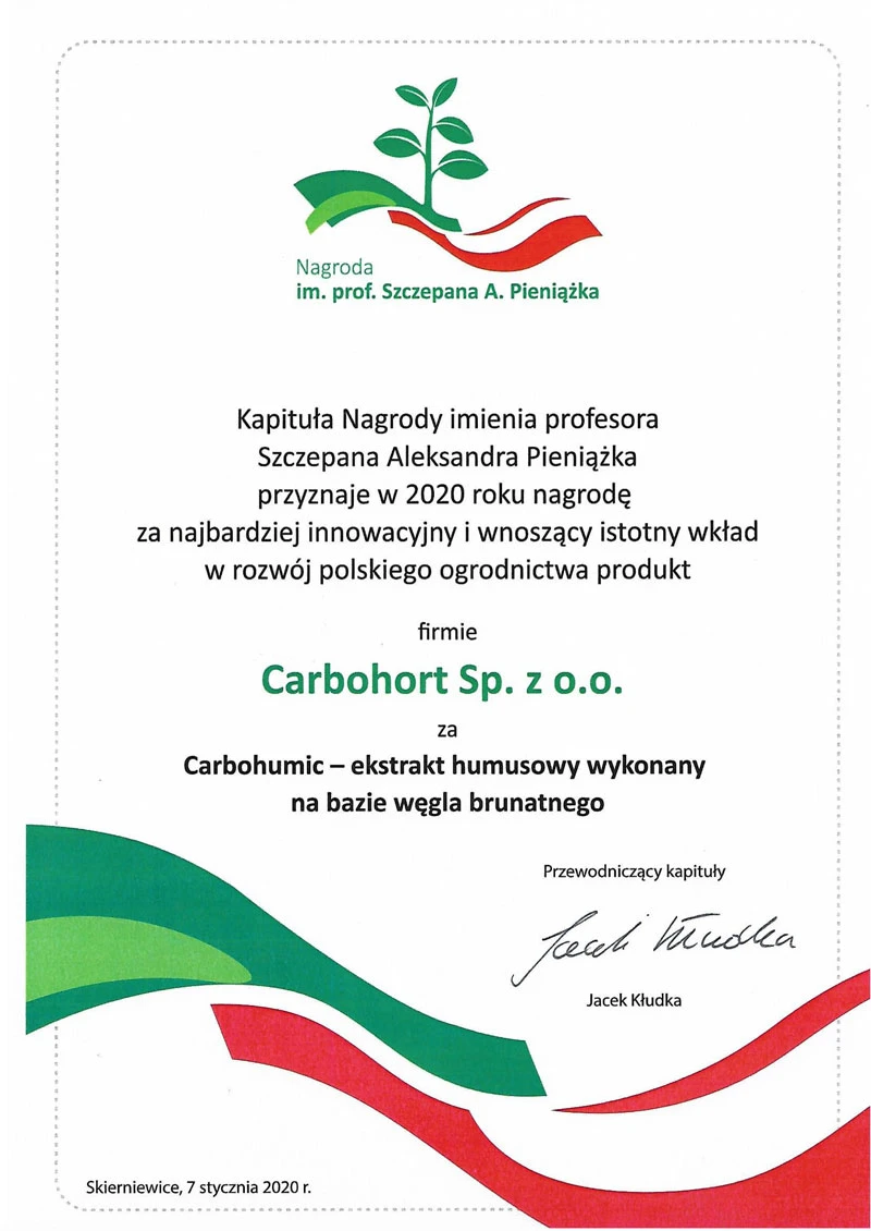 Carbohumic jest atestowanym gęstym ekstraktem z węgla brunatnego - leonardytów barwy ciemnobrunatnej, zawierającym 80 - 95% kwasów humusowych, huminowych i fulwowych, a także znaczące ilości makro i mikroelementów, o zasadowym odczynie. W wodzie tworzy koloidalną zawiesinę nie blokującą systemów fertygacyjnych i dysz opryskiwaczy. Humusowe substancje koloidalne wykazują właściwości sorpcyjne i chelatujące, co zwiększa dostępność dla roślin składników pokarmowych. CARBOHUMIC, jako aktywny składnik próchnicy, w efekcie synergistycznie wpływa pozytywnie na strukturę gleb i podłoży, stymuluje rozwój systemu korzeniowego, poprawia żyzność, odżywianie, wigor i plonowanie roślin.
