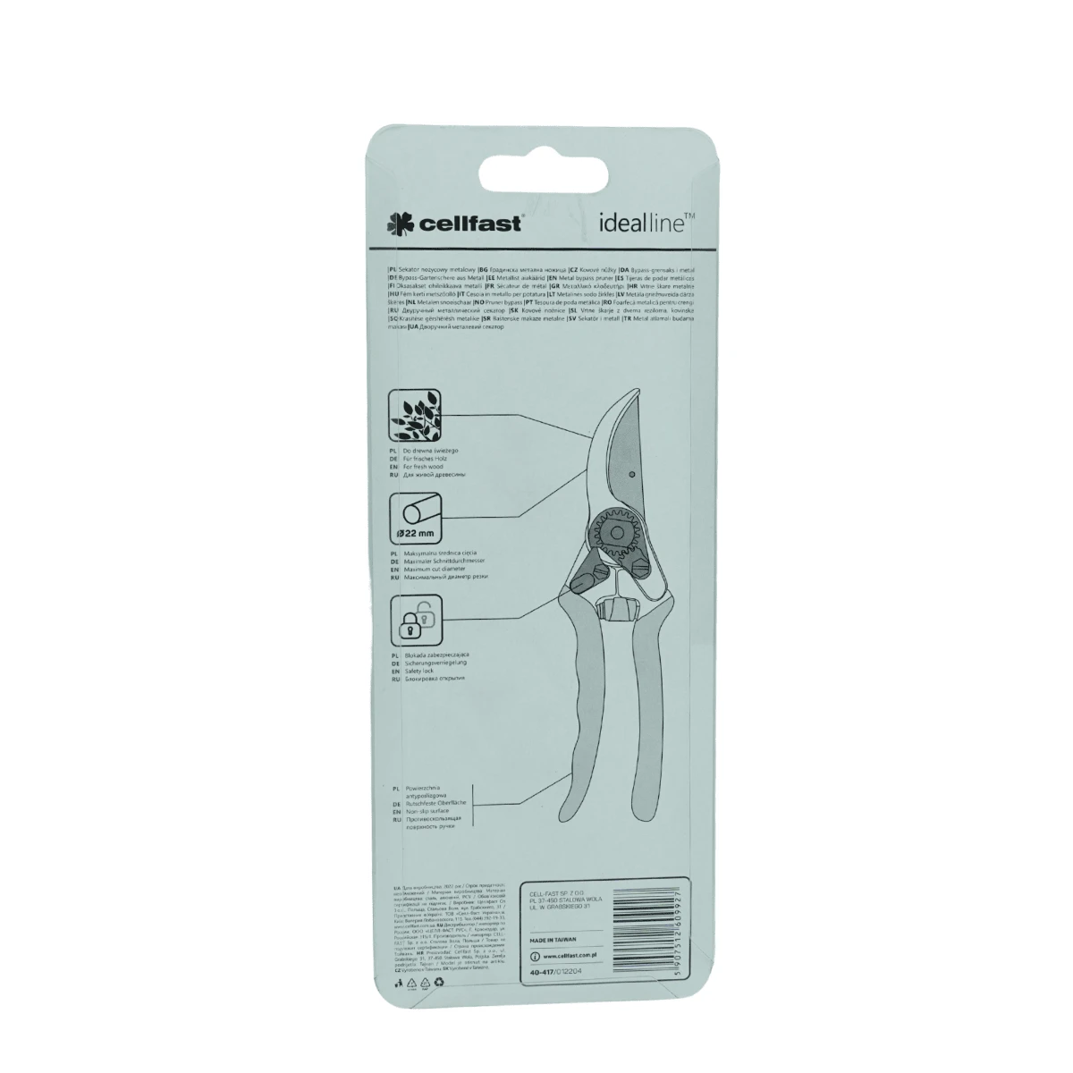 Metalowy sekator nożycowy Ideal marki Cellfast to niezawodne narzędzie stworzone dla pasjonatów ogrodnictwa, którzy oczekują precyzji, trwałości i wygody. To jednoręczny sekator nożycowy przeznaczony do cięcia świeżych gałęzi i pędów o średnicy do 22 mm. Dzięki solidnym materiałom oraz ergonomicznemu uchwytowi praca staje się wydajniejsza i bardziej komfortowa, nawet podczas długotrwałego użytkowania.