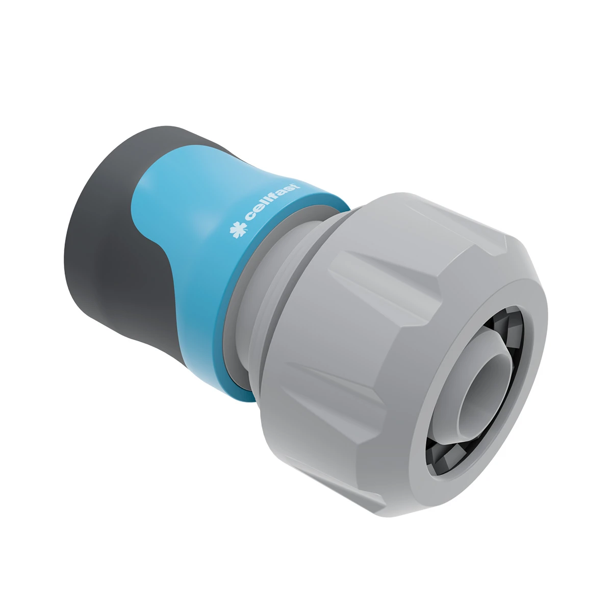 Szybkozłącze przelotowe Cellfast 3/4" z serii CellPro to profesjonalny element systemu nawadniającego, stworzony z myślą o trwałości, szczelności i wygodzie użytkowania. Wykonane z wysokiej jakości tworzywa i wykończone miękką powłoką Soft Touch, zapewnia pewny chwyt nawet mokrymi dłońmi. System SafeTouch chroni przed uszkodzeniami mechanicznymi i zwiększa komfort pracy. Dzięki technologii przelotowej, szybkozłącze umożliwia swobodny przepływ wody, bez automatycznego odcinania – idealne do łączenia odcinków węża lub jako element przedłużający.