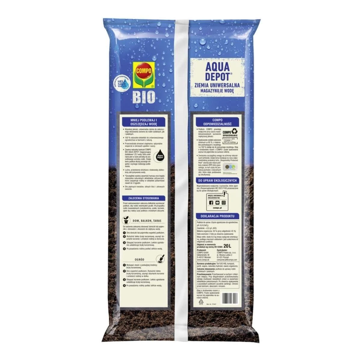 COMPO BIO Aqua Depot® Ziemia uniwersalna to wysokiej jakości, nowoczesna ziemia przeznaczona do całorocznego stosowania w uprawie roślin ozdobnych oraz jadalnych. Produkt został opracowany z myślą o zapewnieniu roślinom stabilnych warunków wzrostu nawet w trudnych okresach upałów i suszy.