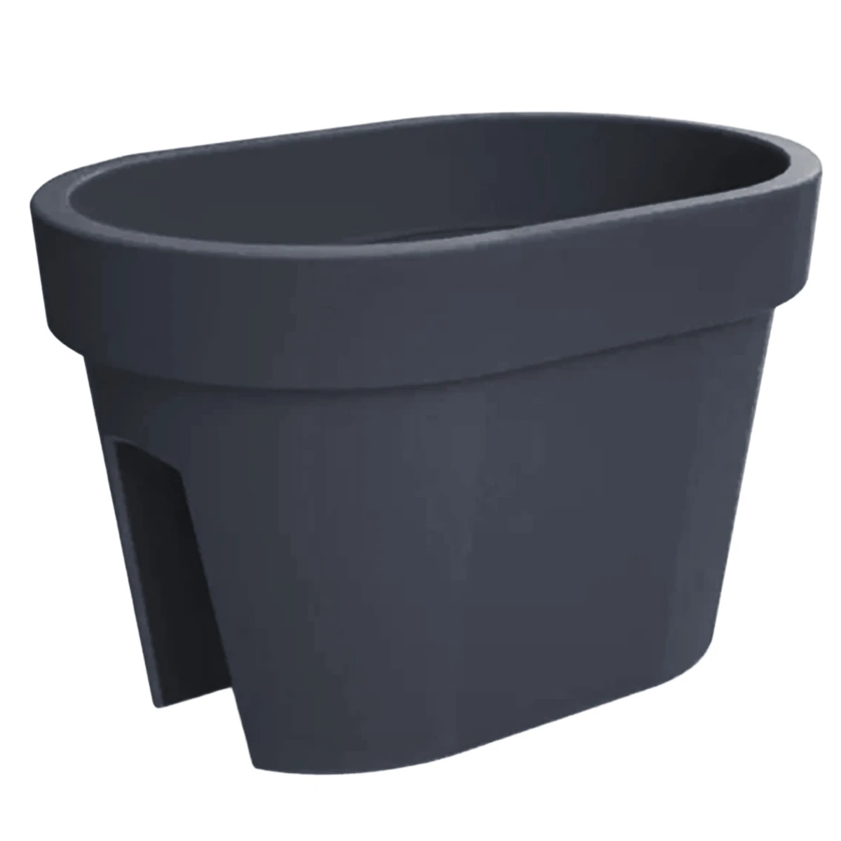 DO RABATU NA WYSYŁKĘ: 1000 złDoniczka Lofly Railing w kolorze antracytowym to praktyczne i estetyczne rozwiązanie do sadzenia roślin na balkonach i tarasach. Wykonana z wytrzymałego tworzywa sztucznego o matowej powierzchni, charakteryzuje się nowoczesnym, lekko zaokrąglonym kształtem i gładkim wykończeniem. Jej konstrukcja została zaprojektowana z myślą o montażu na poręczach – specjalne wcięcie o głębokości 13,5 cm oraz stabilizatory zapewniają bezpieczne i stabilne mocowanie na balustradach o średnicy do 6 cm.