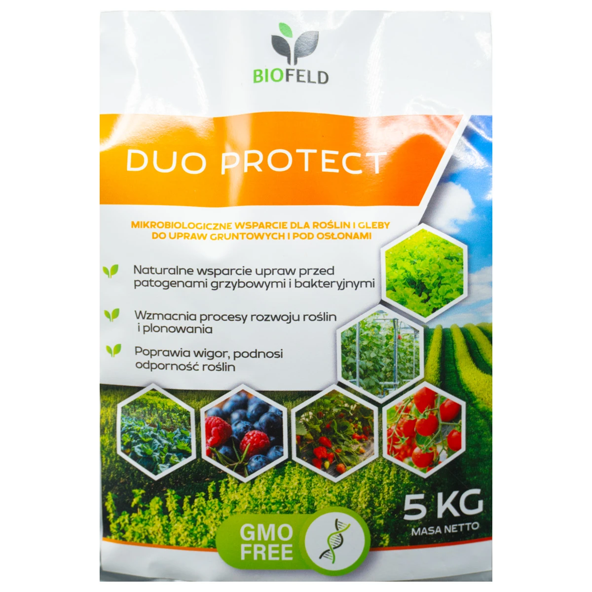 Duo Protect to innowacyjny mikrobiologiczny preparat, wzbogacony o szczepy bakterii Bacillus, naturalnie występujące w glebie. Skutecznie wspiera obronną barierę roślin, wzmacnia odporność roślin przed patogenami grzybowymi i bakteryjnymi. Dedykowany dla warzyw, drzew owocowych, krzewów jagodowych, winorośli i pieczarek. Preparat może być stosowany z insektycydami, herbicydami, nawozami, preparatami biologicznymi i fungicydami chemicznymi.